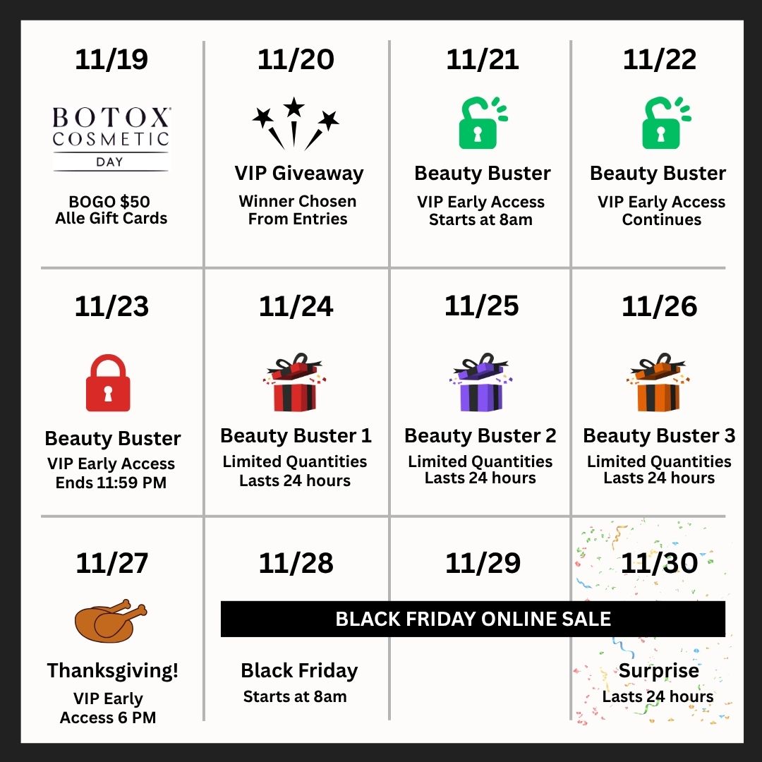 When you join our VIP Giveaway, you’ll unlock exclusive early access to our limited-quantity Black Friday Beauty Busters on November 21st. These are deeply discounted treatments available to only the first 100 purchasers.