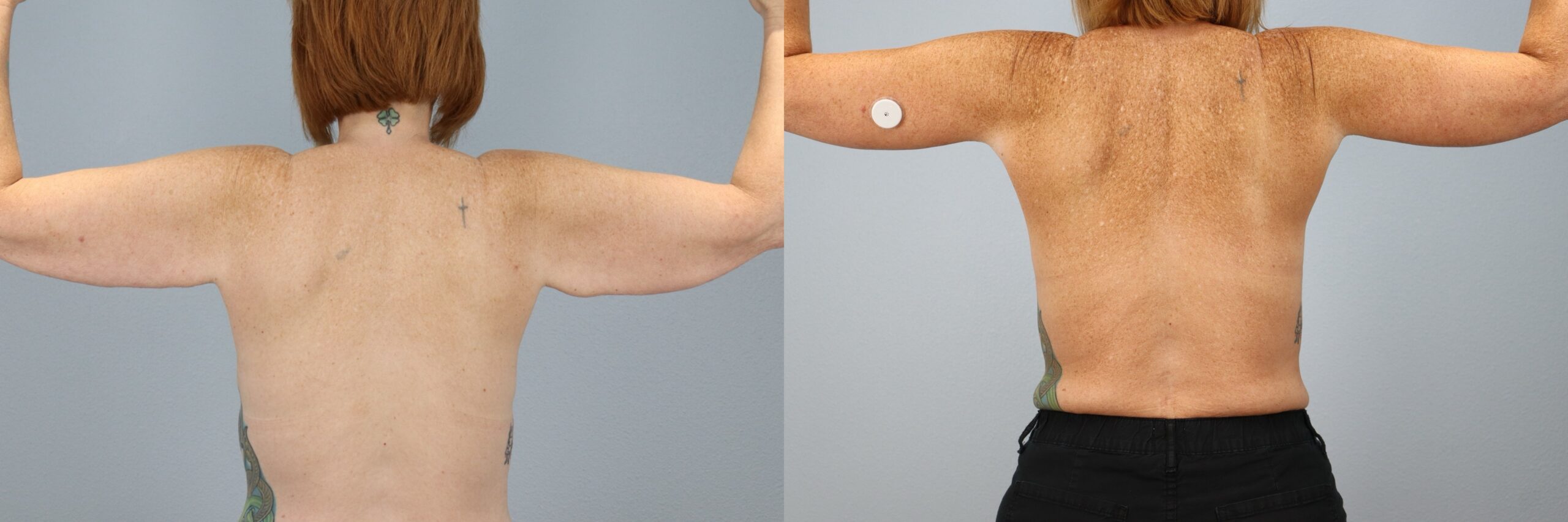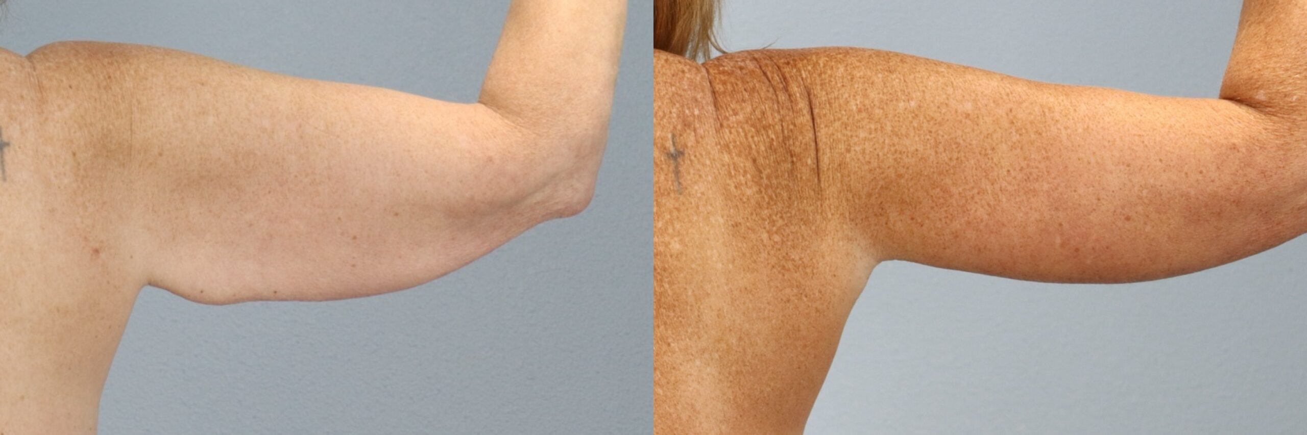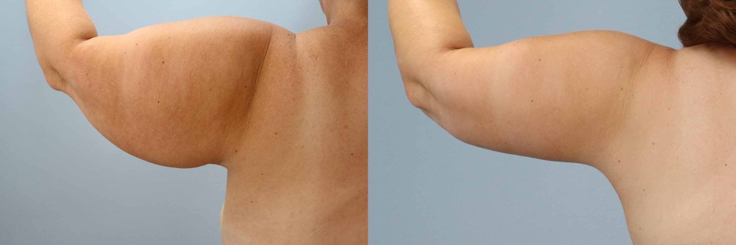 This 51-year-old female patient is shown 8 months after undergoing an arm lift (brachioplasty) performed by board-certified plastic surgeon Dr. Neaman. The procedure removed excess skin and reshaped the upper arms for a smoother, more toned contour. At 8 months post-op, her results highlight leaner arm definition, improved proportions, and scars placed discreetly for minimal visibility.