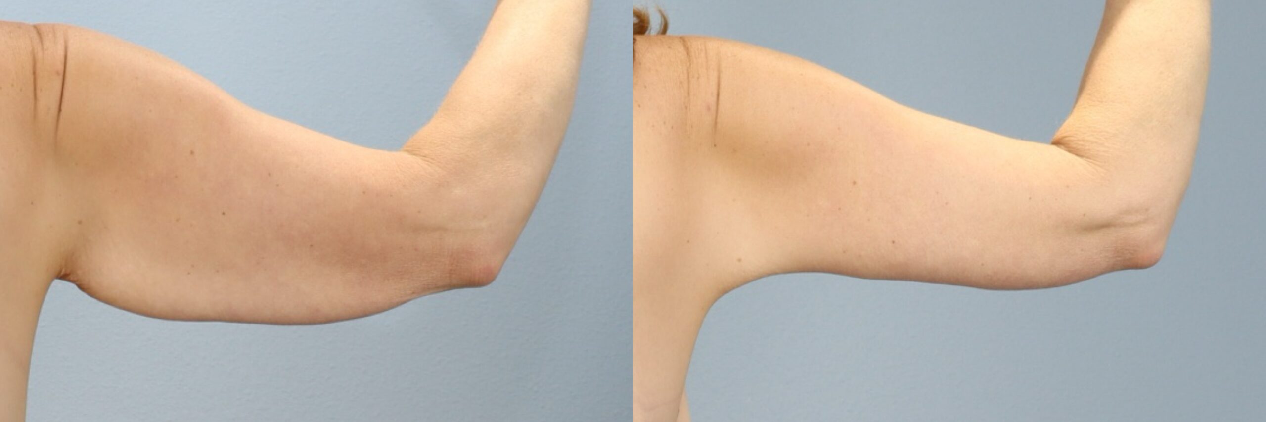 This 50-year-old female patient is shown 11 months after undergoing an arm lift (brachioplasty) with board-certified plastic surgeon Dr. Neaman. This skin removal surgery addressed excess tissue along the upper arms to create a firmer, more contoured appearance. Tissue was removed as part of her comprehensive body contouring plan. At 11 months post-op, her arms appear smoother, tighter, and more proportionate, with results that enhance comfort and overall balance.