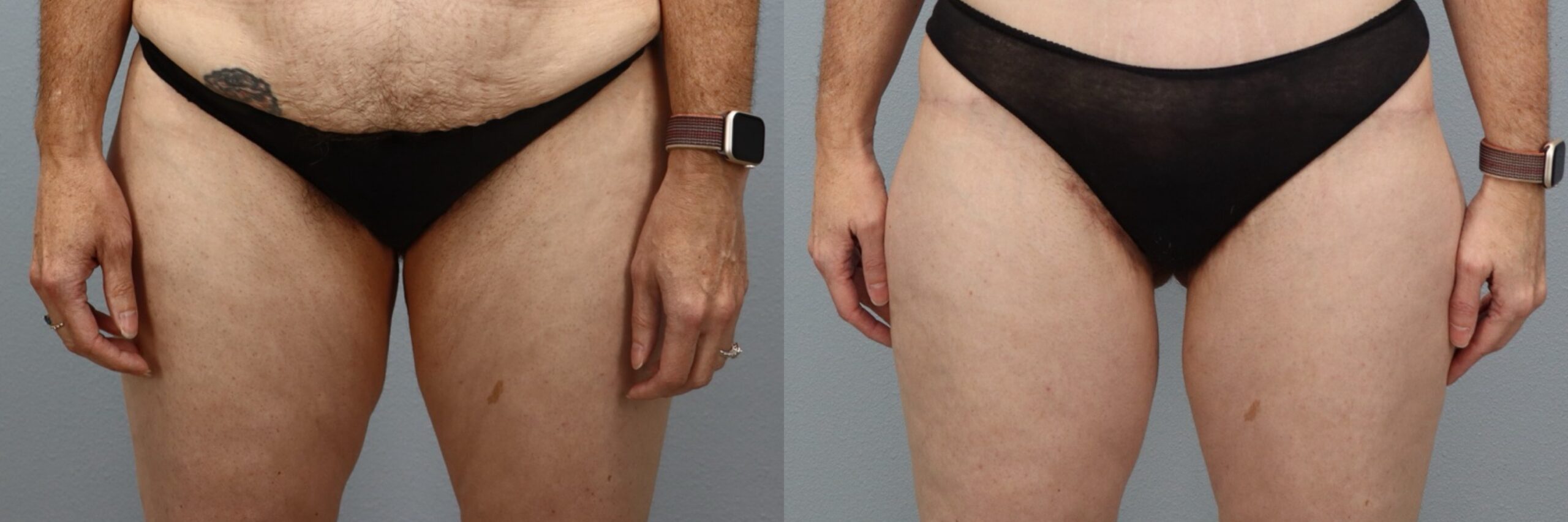 Featured here is a 34 year old female who underwent a Thigh Lift performed by board-certified plastic surgeon Dr. Neaman. She is pictured here 12 months after her surgery.