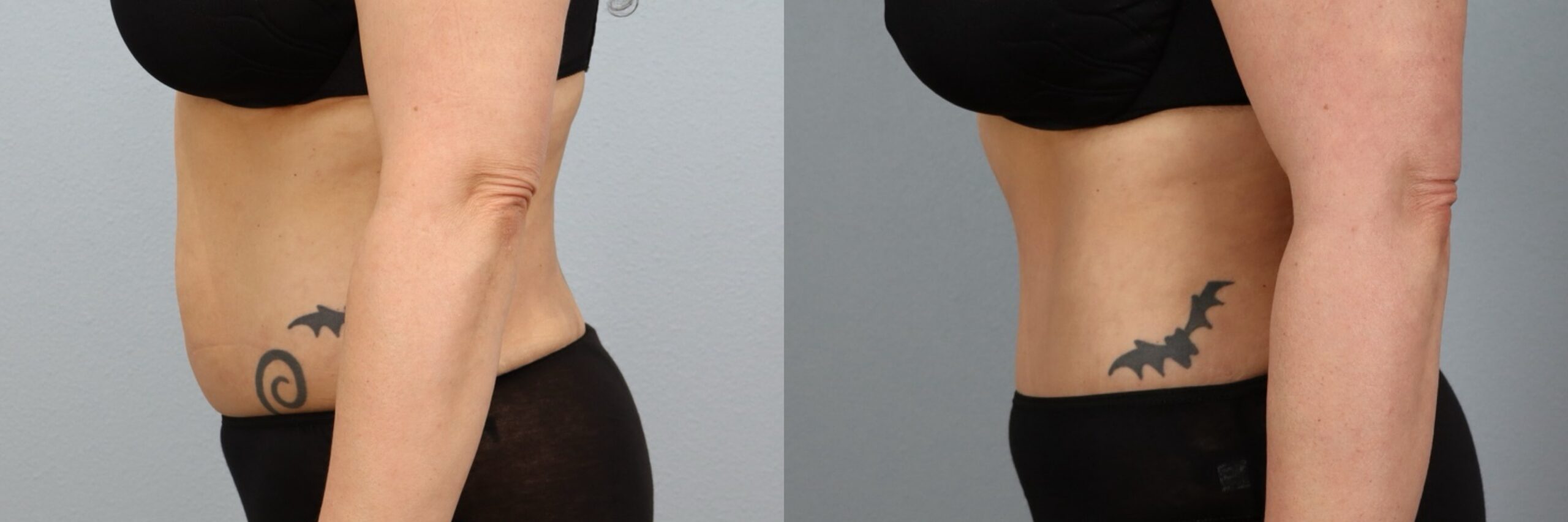 This 47-year-old female patient is shown 6 months after undergoing a Tummy Tuck (Abdominoplasty) with Liposuction to the Flanks, Back and Abdomen performed by board-certified plastic surgeon Dr. Neaman. This comprehensive body contouring procedure removed excess abdominal skin, tightened the underlying muscles, and refined the surrounding areas with targeted liposuction. By treating the abdomen and adjacent areas together, the procedure created smoother transitions and improved waist definition. Her before and after results demonstrate a flatter midsection, enhanced contour, and a more sculpted silhouette.