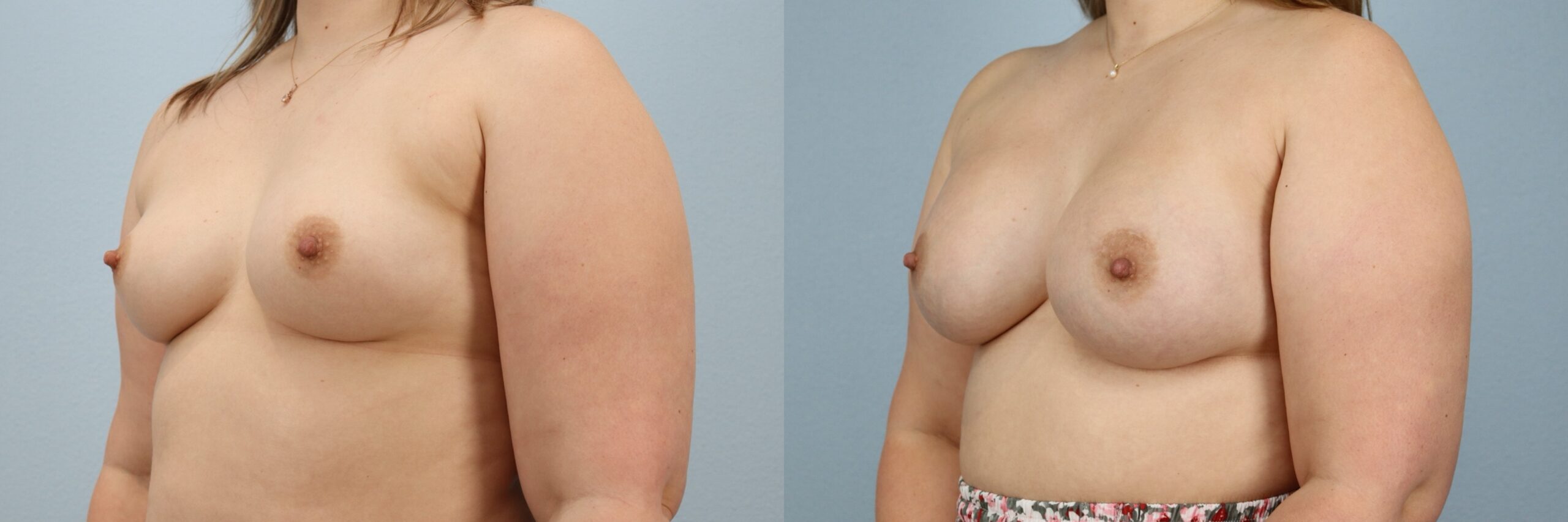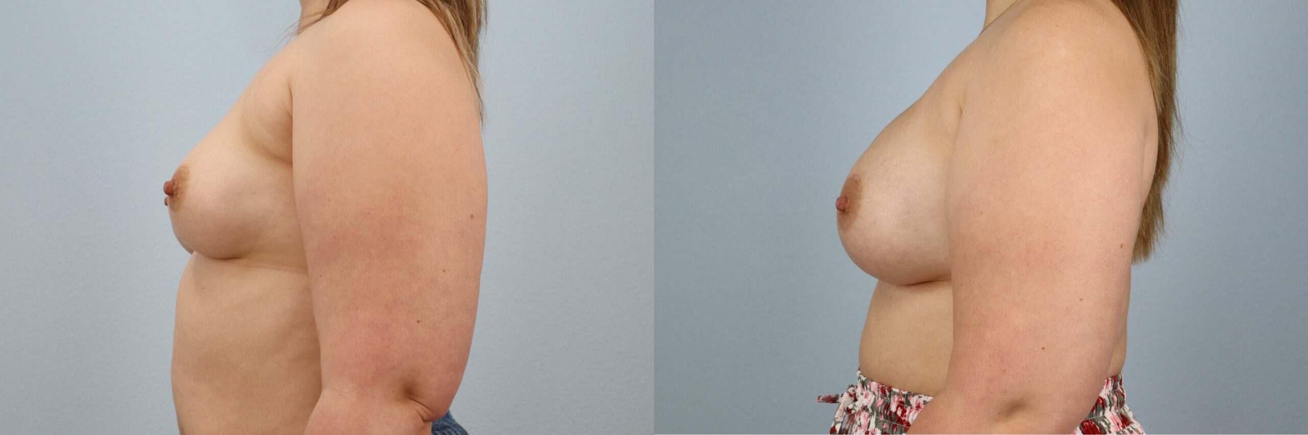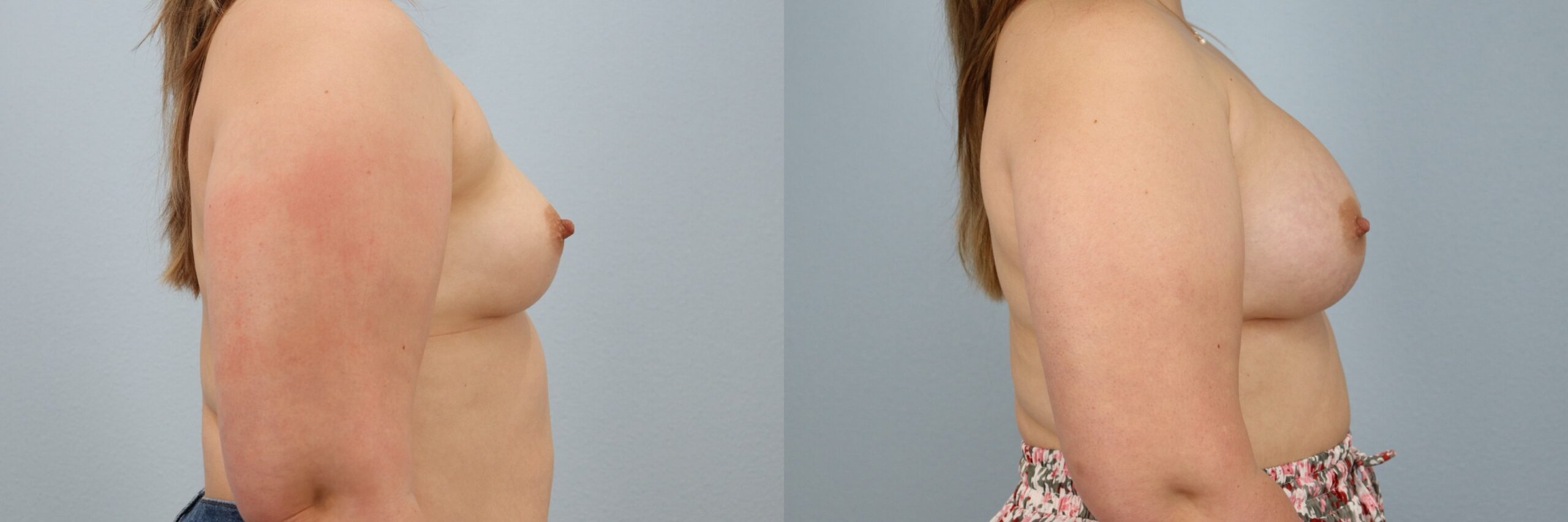 This 29-year-old female patient is shown 7 months after undergoing a breast augmentation performed by board-certified plastic surgeon Dr. Neaman. Using silicone smooth round high-profile implants, 450cc on the right and 415cc on the left, placed under the muscle, Dr. Neaman achieved natural symmetry and enhanced volume while maintaining proportion to her frame. Her before and after breast augmentation results highlight fuller, balanced contours and a refined, youthful appearance. At 7 months post-op, her results continue to soften and settle, showcasing a beautiful, natural enhancement with lasting results.