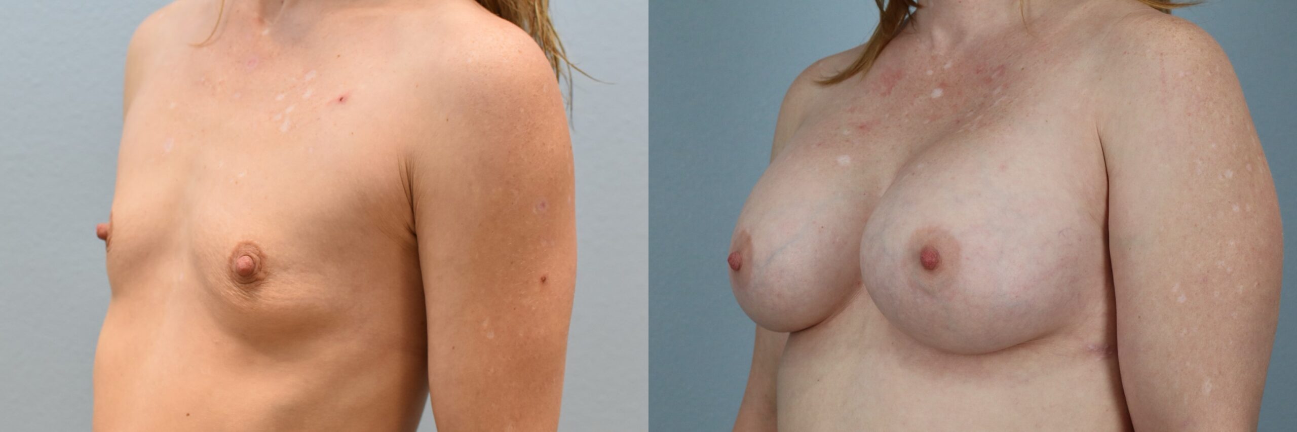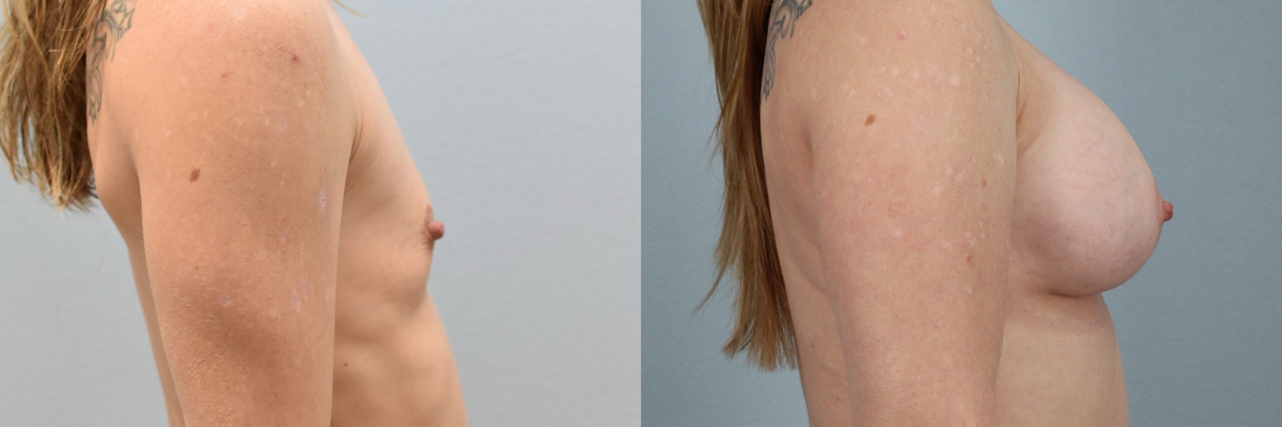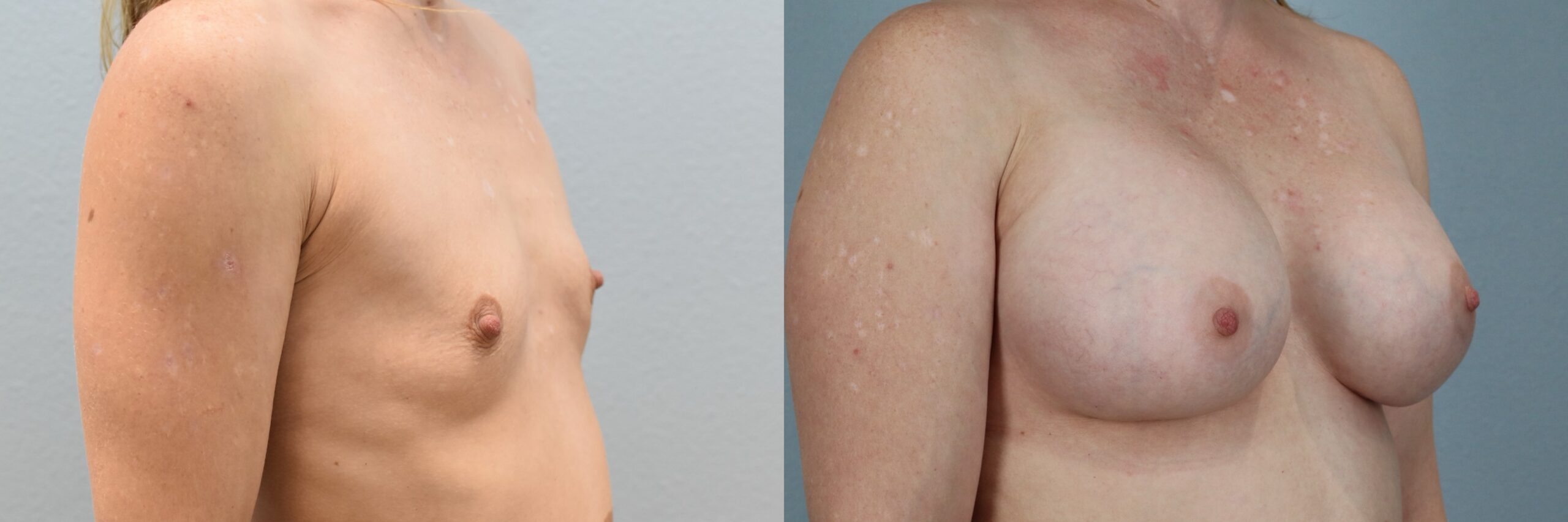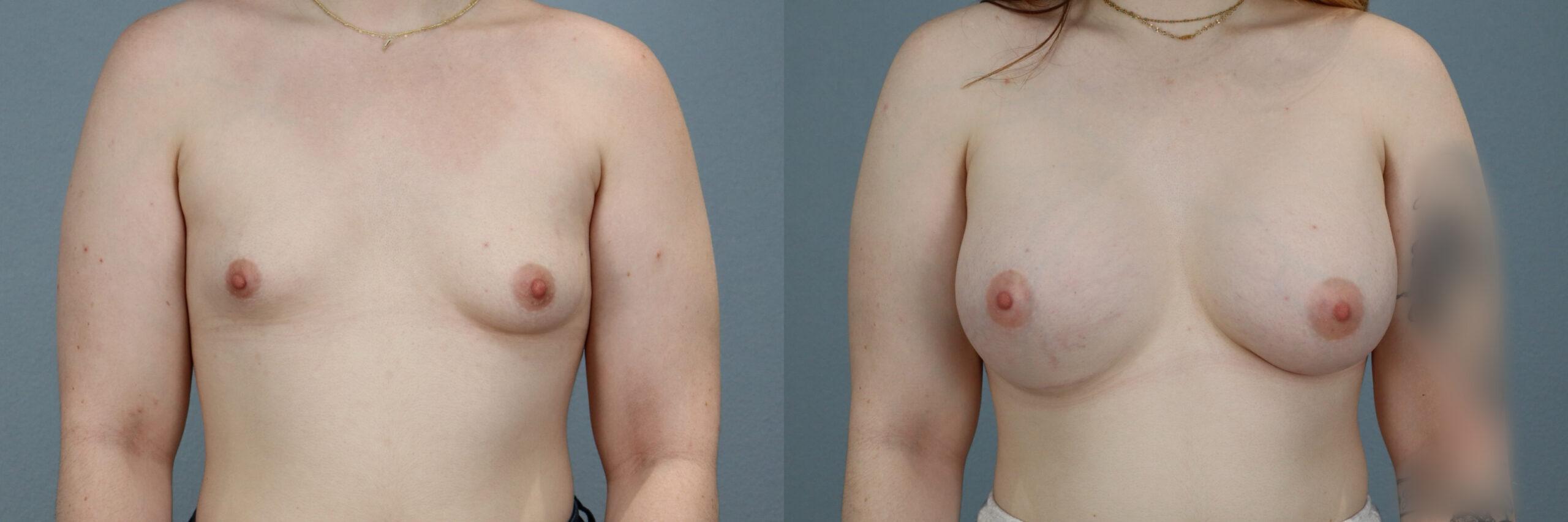 This 38-year-old female patient is shown 2.5 years after undergoing a Breast Augmentation performed by board-certified plastic surgeon Dr. Neaman. She received 520cc high profile silicone implants to enhance breast volume and projection while maintaining proportion to her frame. Her results demonstrate improved upper pole fullness, balanced contour, and refined symmetry. The overall appearance reflects smooth implant positioning and a natural silhouette.