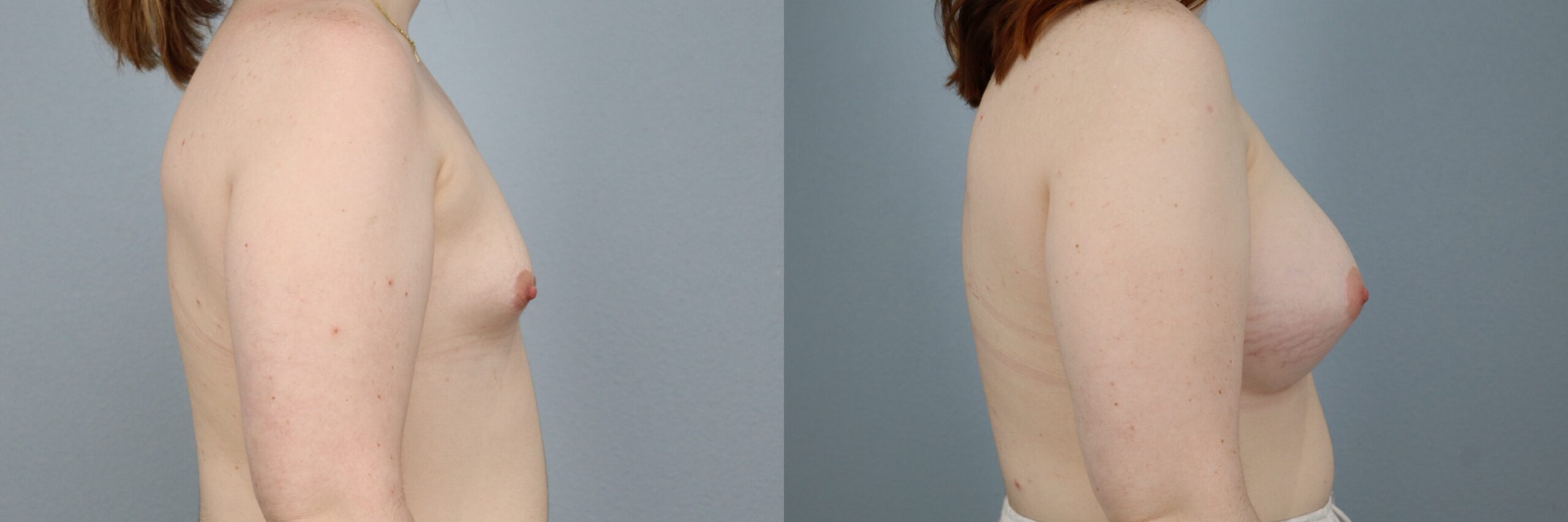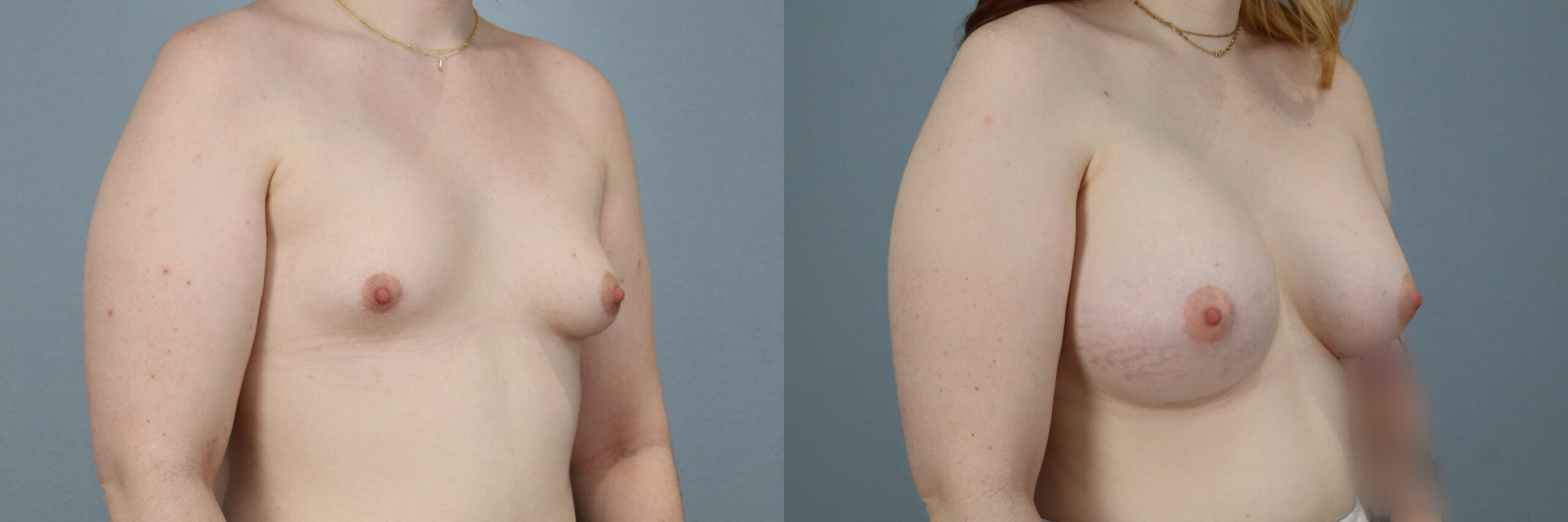 This 21-year-old female patient is shown 8 months after undergoing a Breast Augmentation performed by board-certified plastic surgeon Dr. Neaman. Silicone high profile implants sized 605cc on the right and 560cc on the left were selected to enhance volume and improve symmetry. By customizing implant size, the procedure created balanced proportions and refined contour. At 8 months post-op, her before and after breast augmentation results demonstrate fuller shape, improved symmetry, and smooth, natural-looking definition.