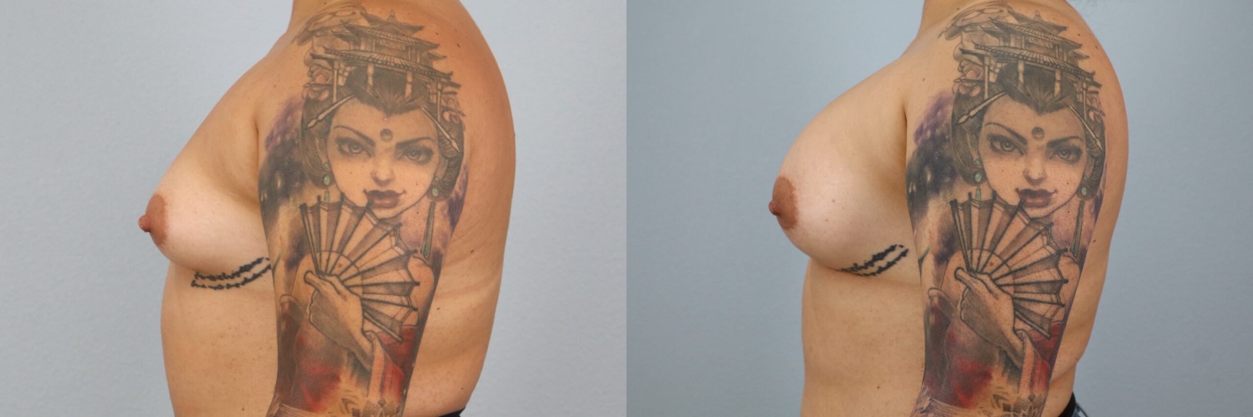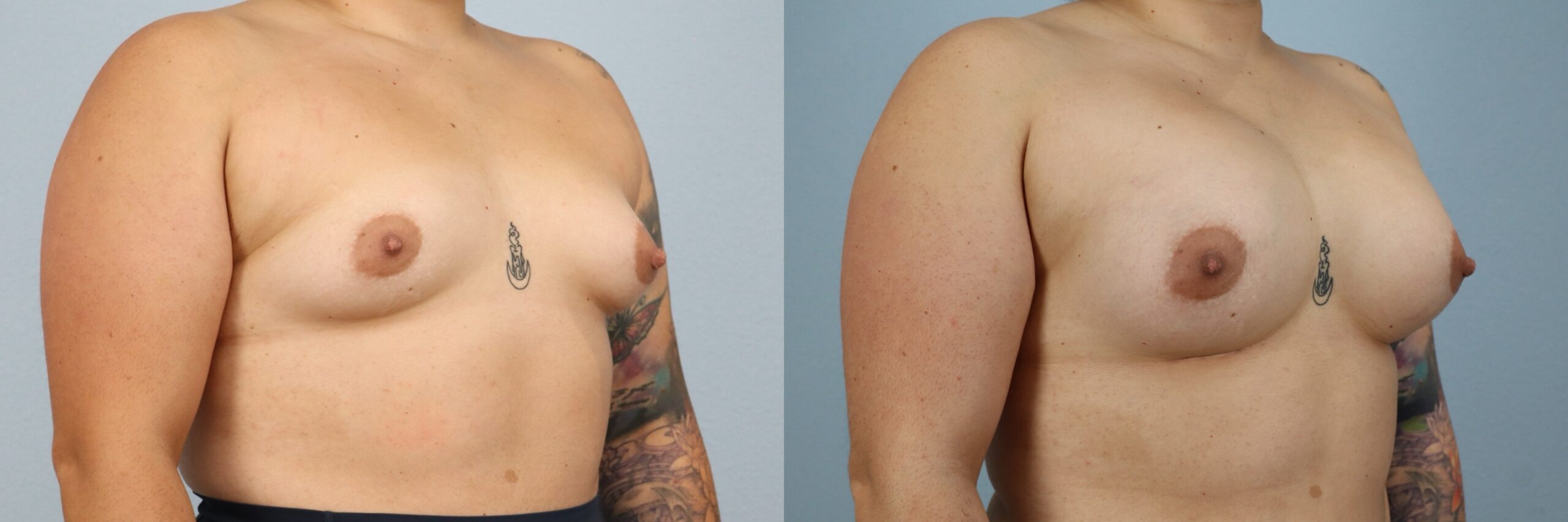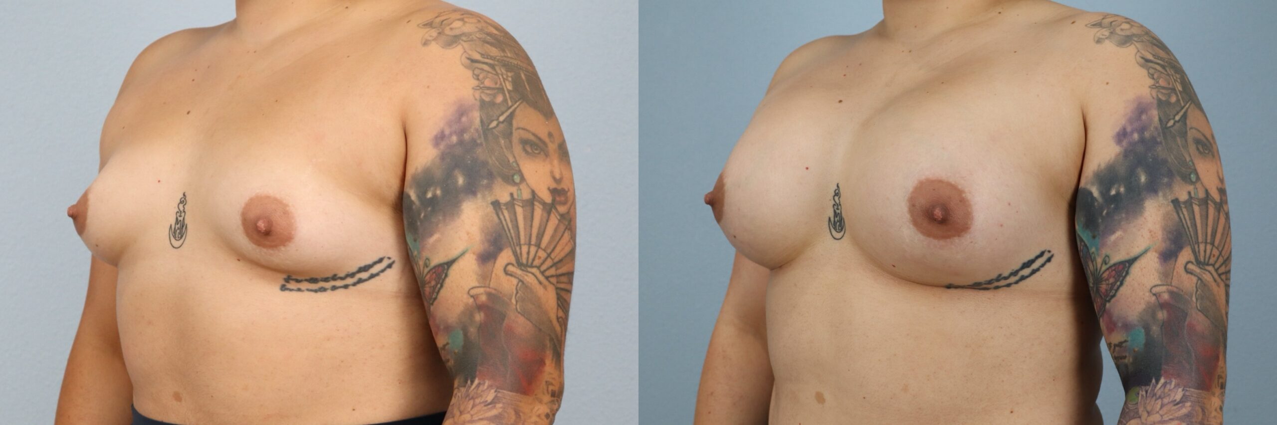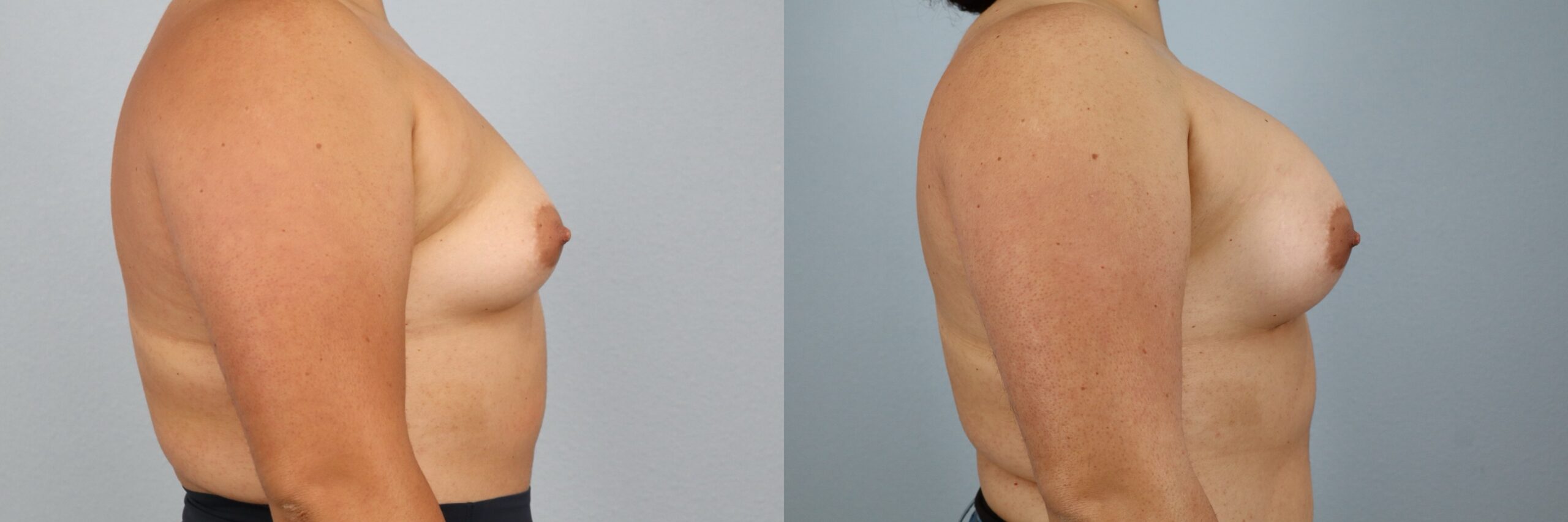 This 33-year-old female patient is shown 8 months after undergoing a Breast Augmentation performed by board-certified plastic surgeon Dr. Neaman. High-profile silicone implants sized 485cc were placed beneath the muscle to enhance breast volume and projection while maintaining natural proportions. Submuscular placement supports a smooth upper pole transition and balanced contour. At 8 months post-op, her before and after results demonstrate fuller shape, improved symmetry, and refined overall breast contour.