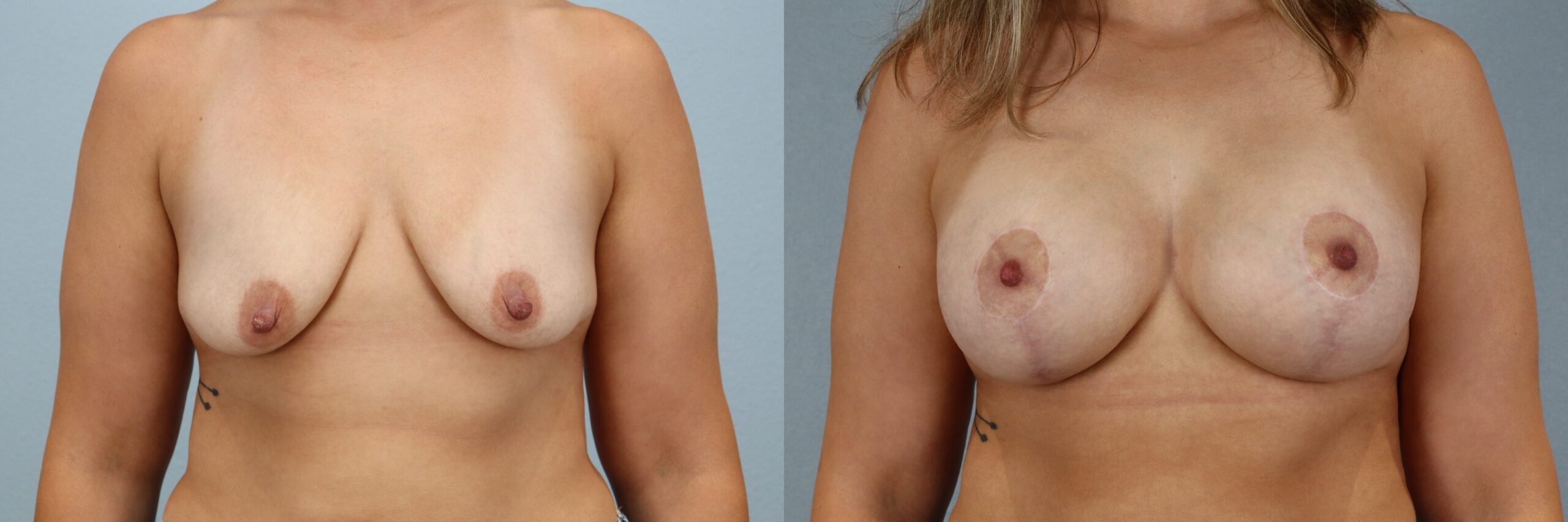Featured here is a 40 year old female who underwent a Breast Lift (Mastopexy) with Implants performed by board-certified plastic surgeon Dr. Neaman. She is pictured here 8 months after her surgery.