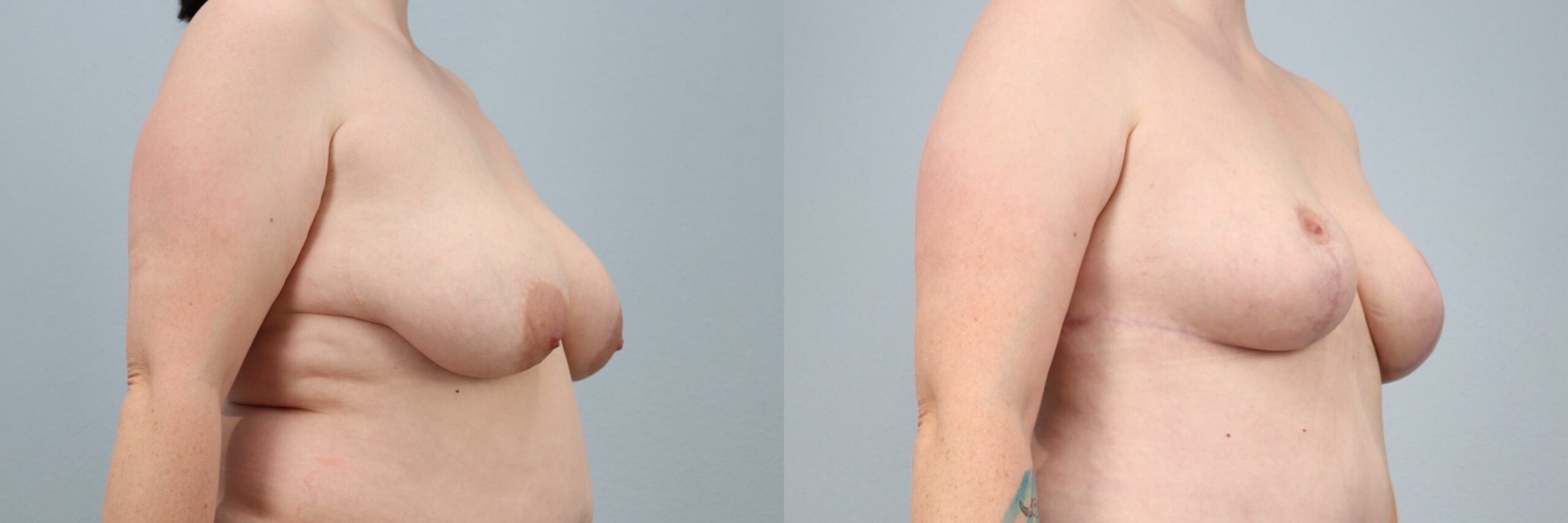 This 39-year-old female patient is shown 6 months after undergoing a breast lift (mastopexy) performed by board-certified plastic surgeon Dr. Neaman. This procedure reshaped and elevated the natural breast tissue to improve position, firmness, and overall contour. At 6 months post-op, her before and after breast lift results show enhanced projection, improved symmetry, and a more youthful breast shape that appears natural and well-balanced with her frame.