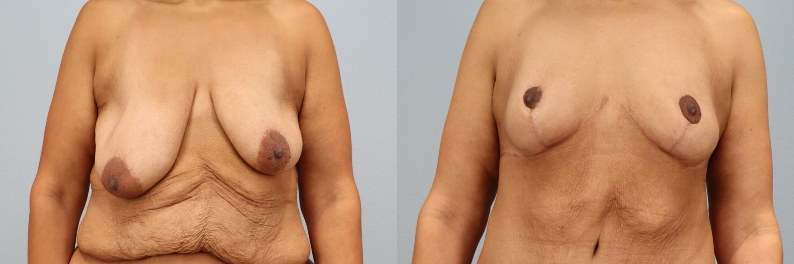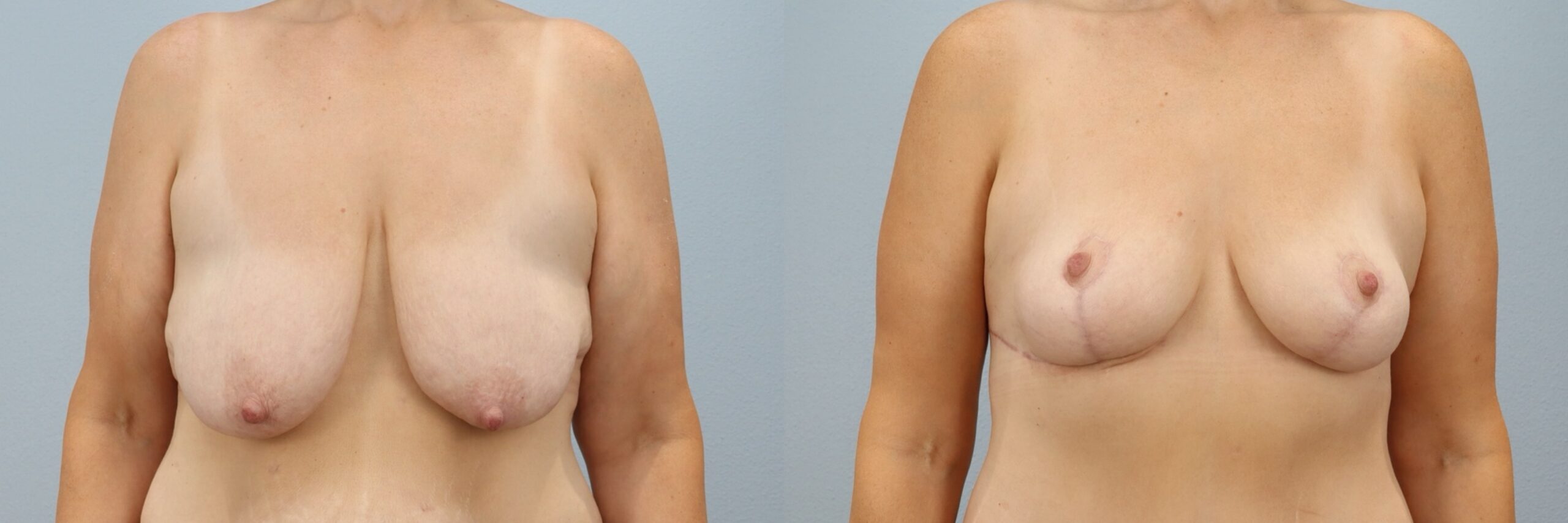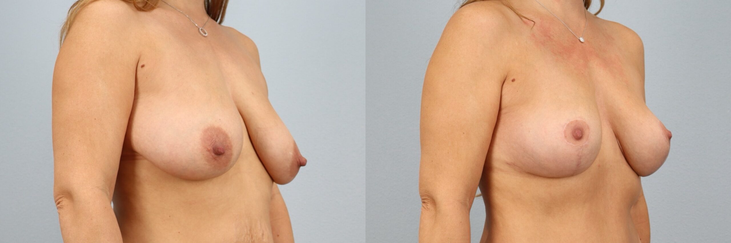 This 43-year-old female patient is shown 7 months after undergoing a breast lift (mastopexy) performed by board-certified plastic surgeon Dr. Neaman. The procedure elevated and reshaped the natural breast tissue to improve position, symmetry, and contour. At 7 months post-op, her results show a more youthful breast profile with improved projection and balance that complements her frame. Continued healing supports long-lasting, natural-looking results.