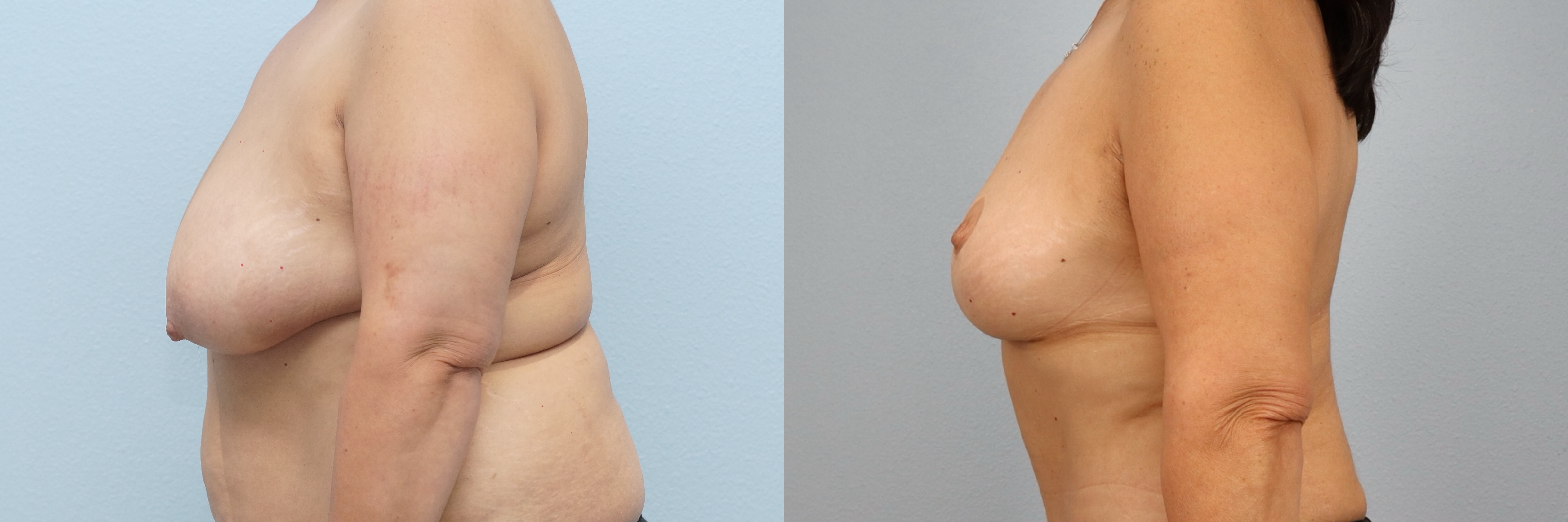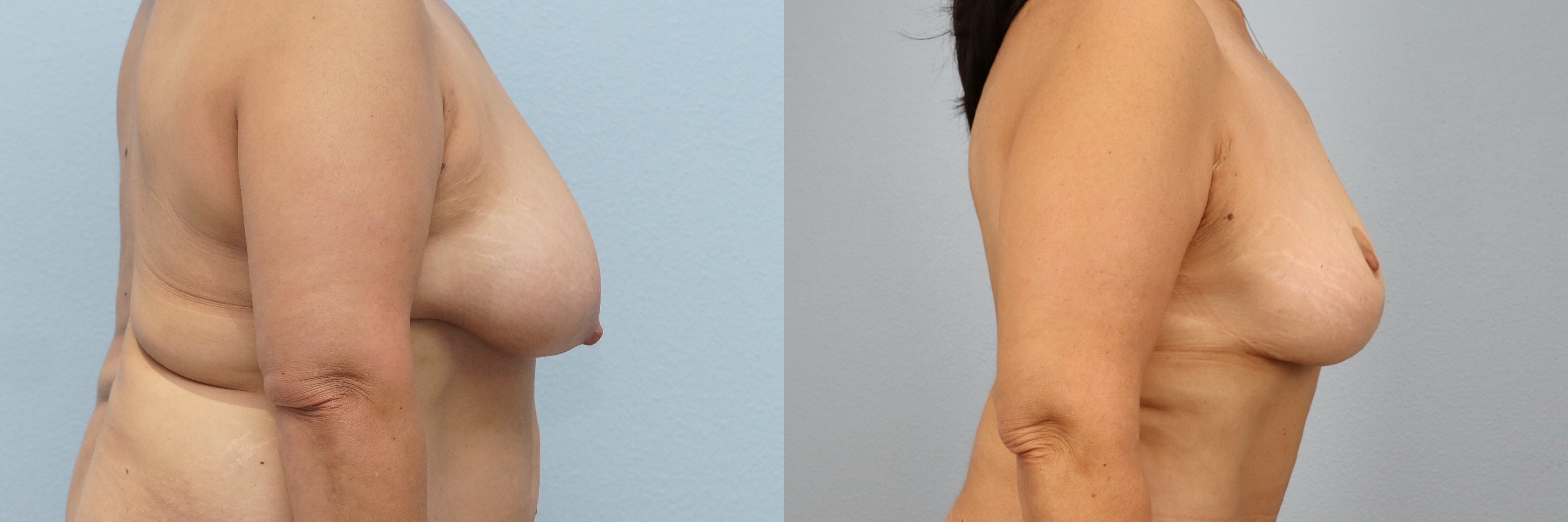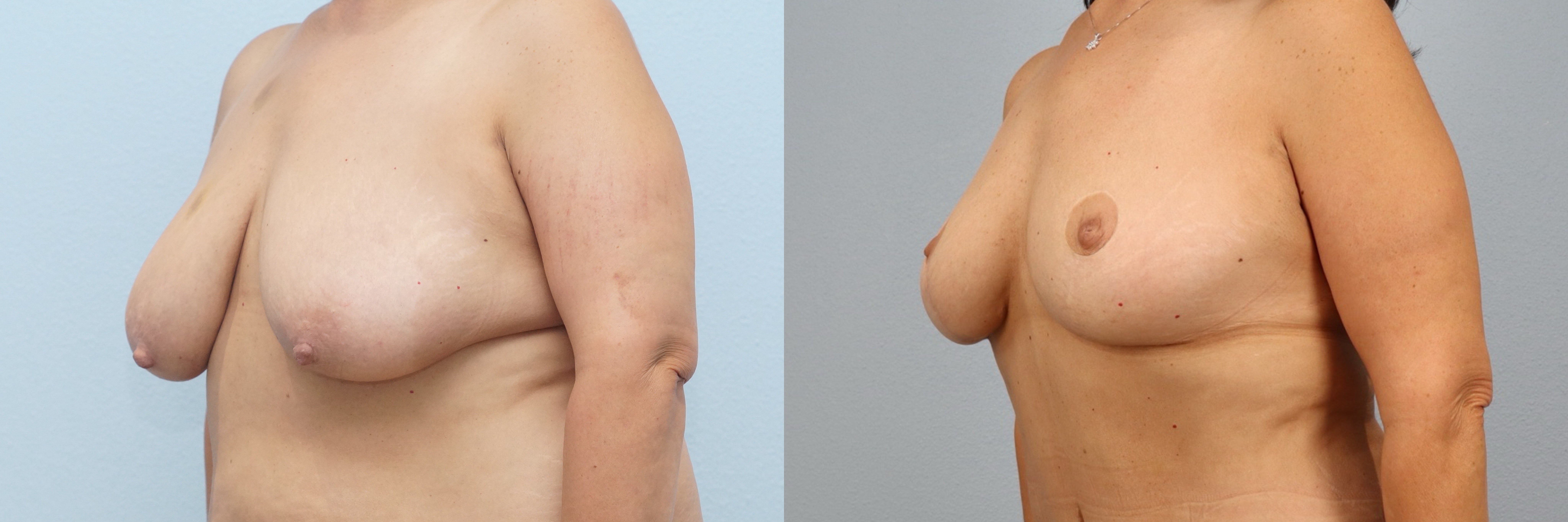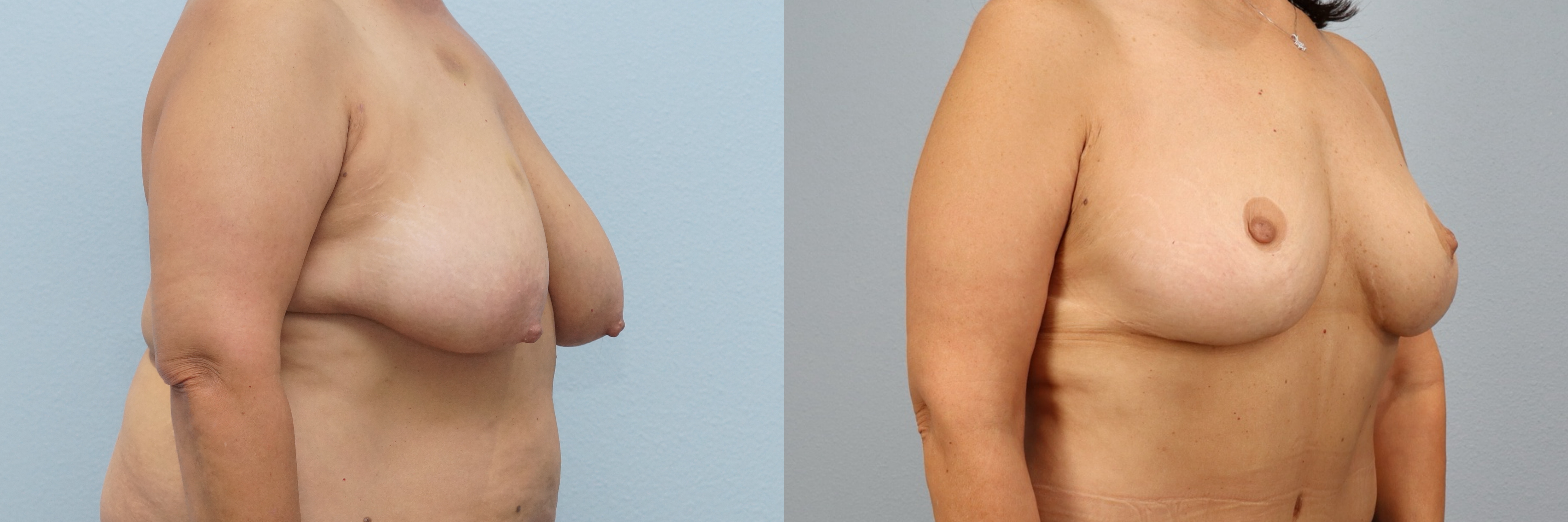 This 56-year-old female patient is shown 3 years after undergoing a breast lift (mastopexy) with liposuction to the axilla performed by board-certified plastic surgeon Dr. Neaman. This procedure elevated and reshaped the natural breast tissue while refining the outer breast and underarm area for a smoother contour. At 3 years post-op, her results show a well-supported breast position, improved symmetry, and a more balanced upper body profile with long-lasting definition.