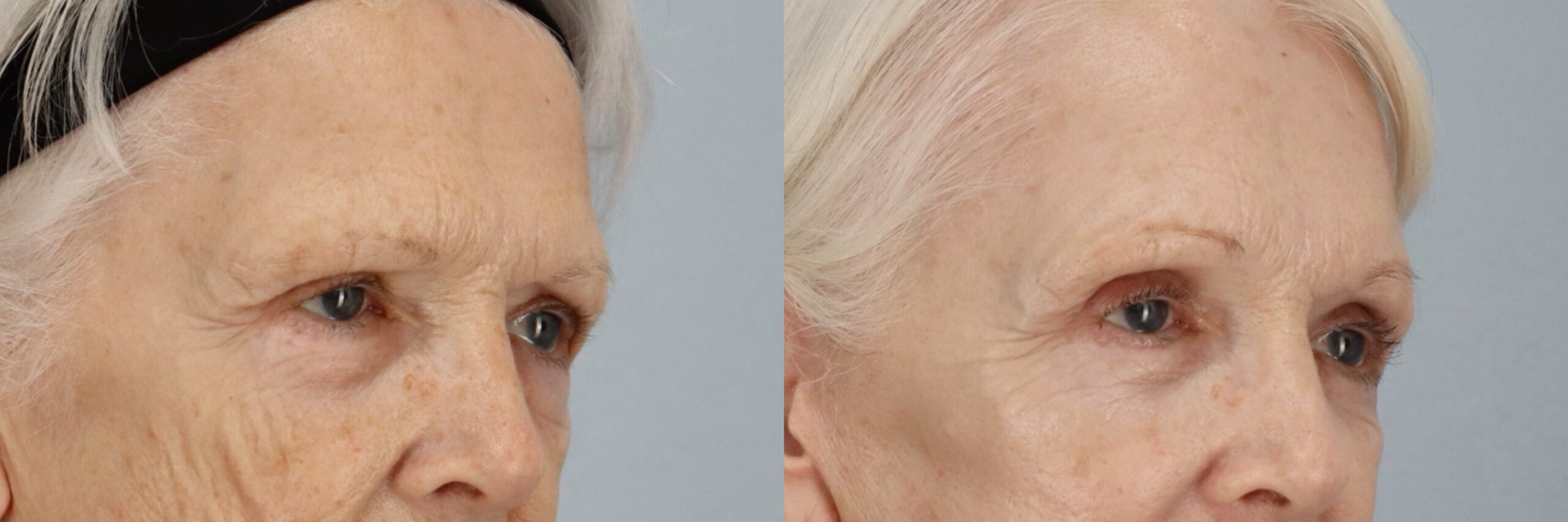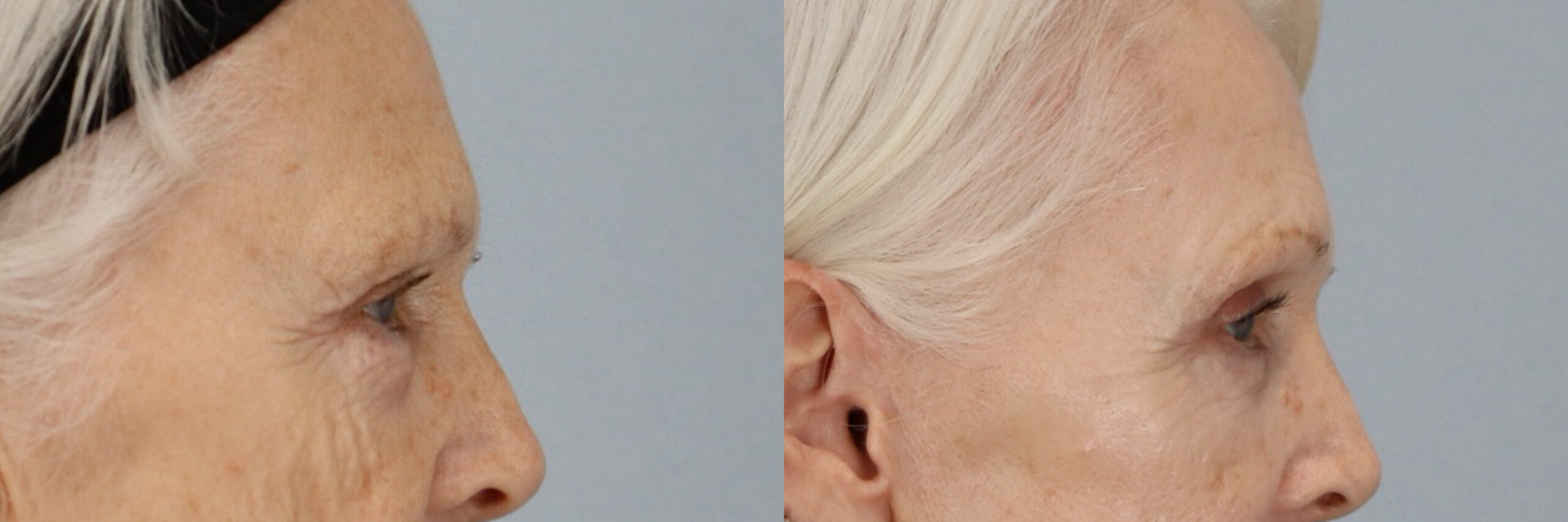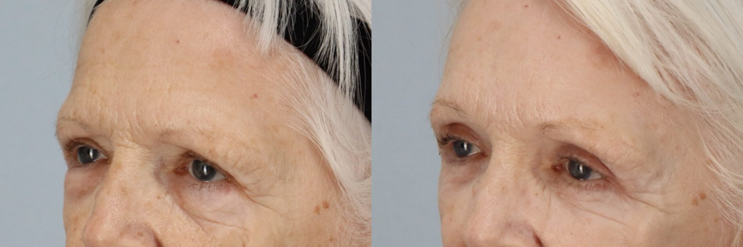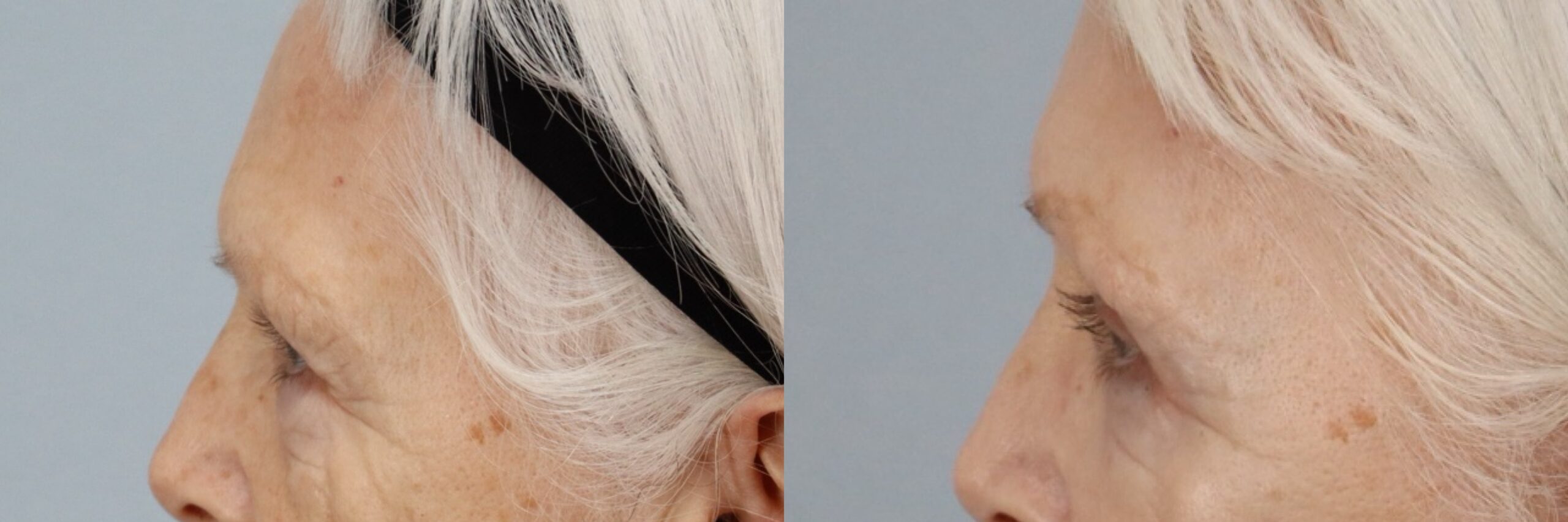 This 71-year-old female patient is shown 6 months after undergoing a Brow Lift (endoscopic) performed by board-certified plastic surgeon Dr. Neaman. This minimally invasive technique elevated the brow position to improve contour and restore balance to the upper face. By addressing brow descent, the procedure enhanced overall facial harmony. Her results highlight improved brow position, smoother forehead contour, and a more refreshed upper facial appearance.