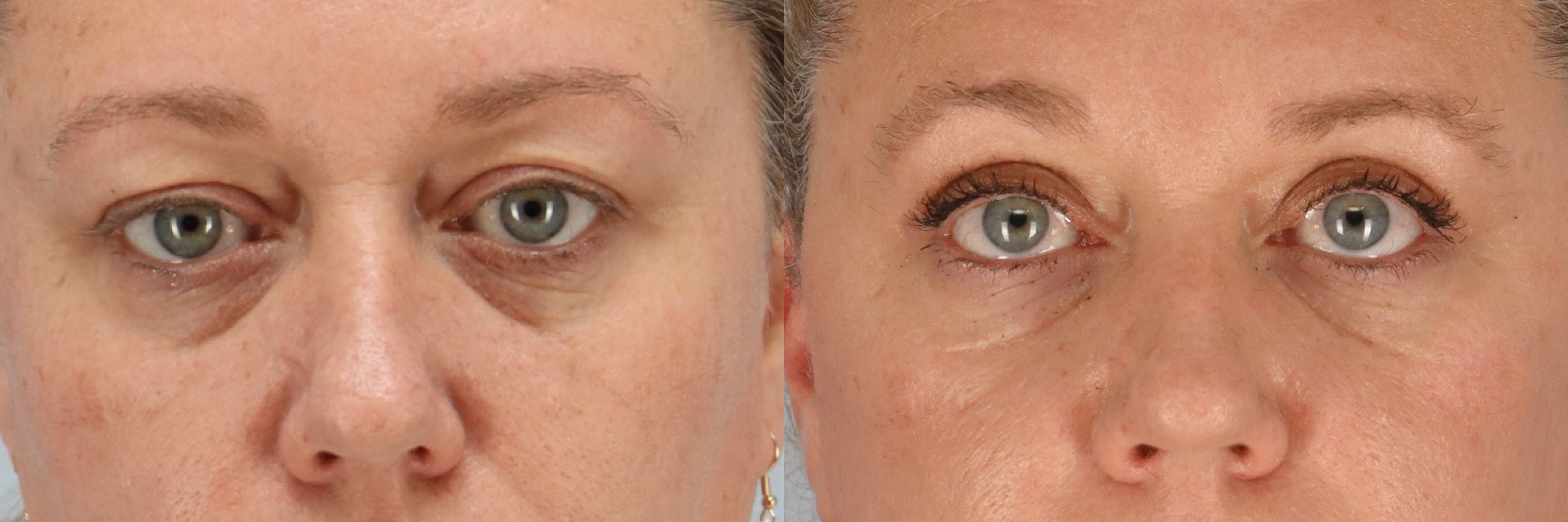 Featured here is a 42 year old female who underwent an Upper Lid Blepharoplasty performed by board certified plastic surgeon Dr. Christiansen. She is pictured here 6 weeks after her surgery.