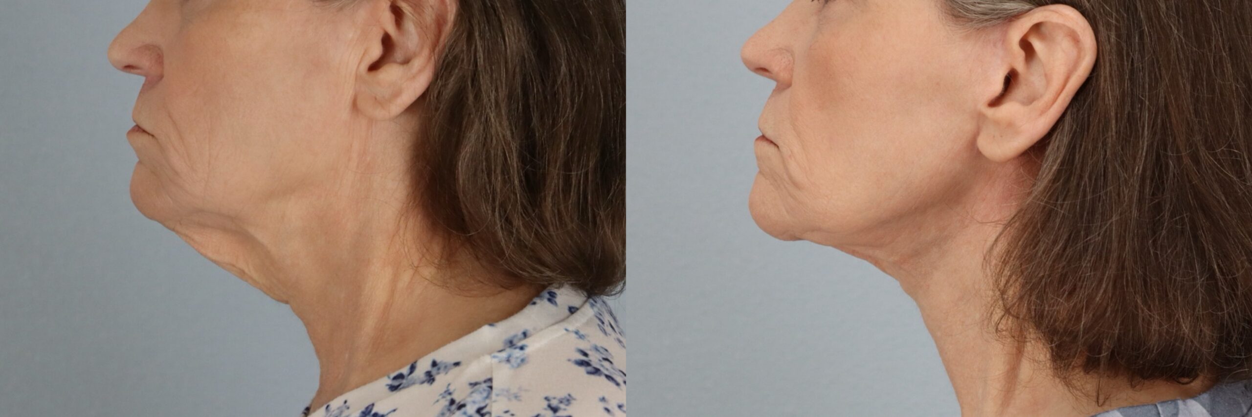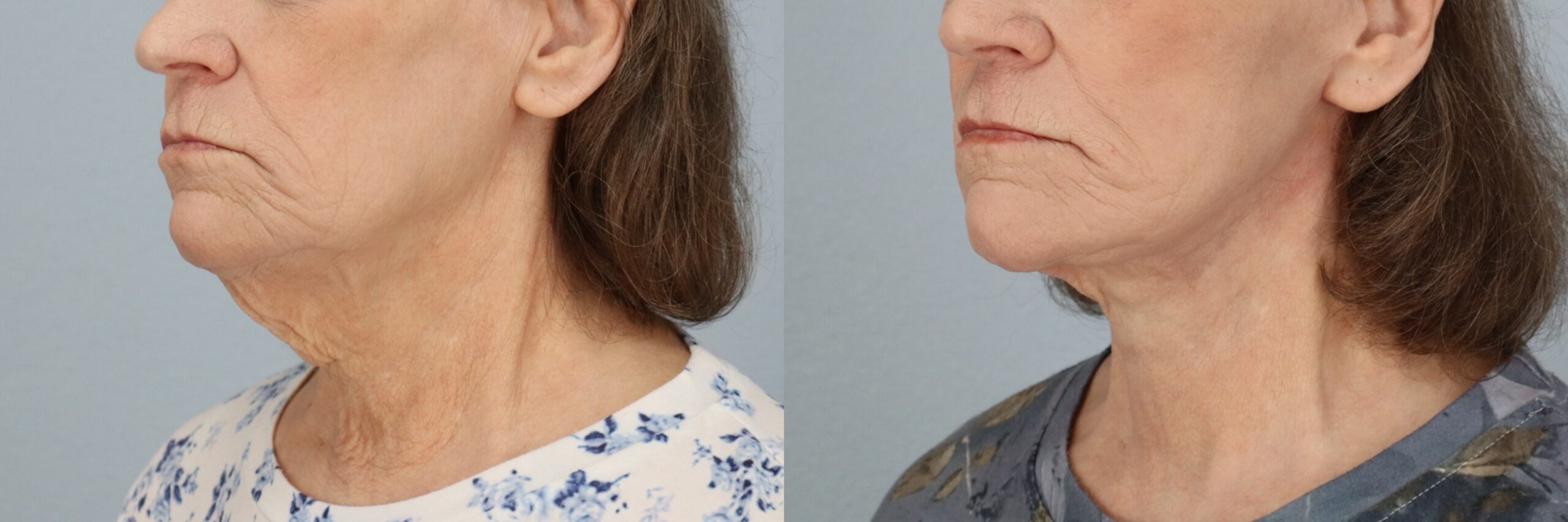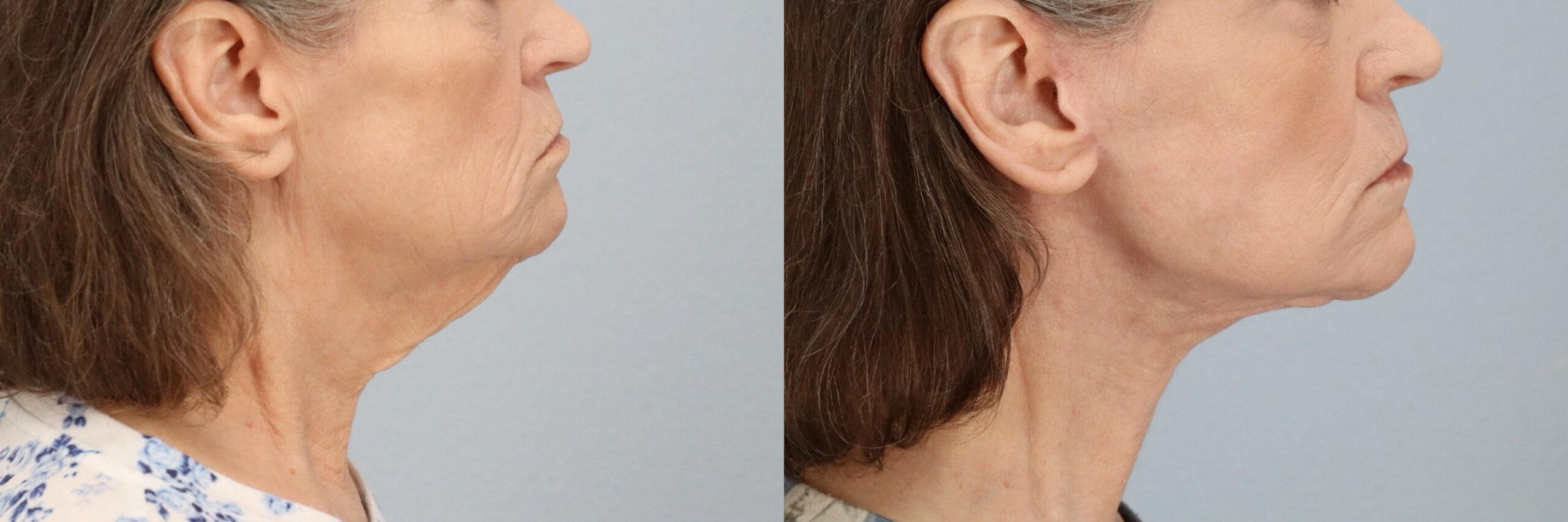 This 71-year-old female patient is shown 5 months after undergoing a Neck Lift performed by board-certified plastic surgeon Dr. Neaman. This procedure addressed skin laxity and soft tissue changes beneath the chin and along the neckline. By tightening underlying structures and refining excess skin, the surgery improved contour and definition. Her before and after results demonstrate a smoother neckline, enhanced jawline transition, and a more sculpted profile.