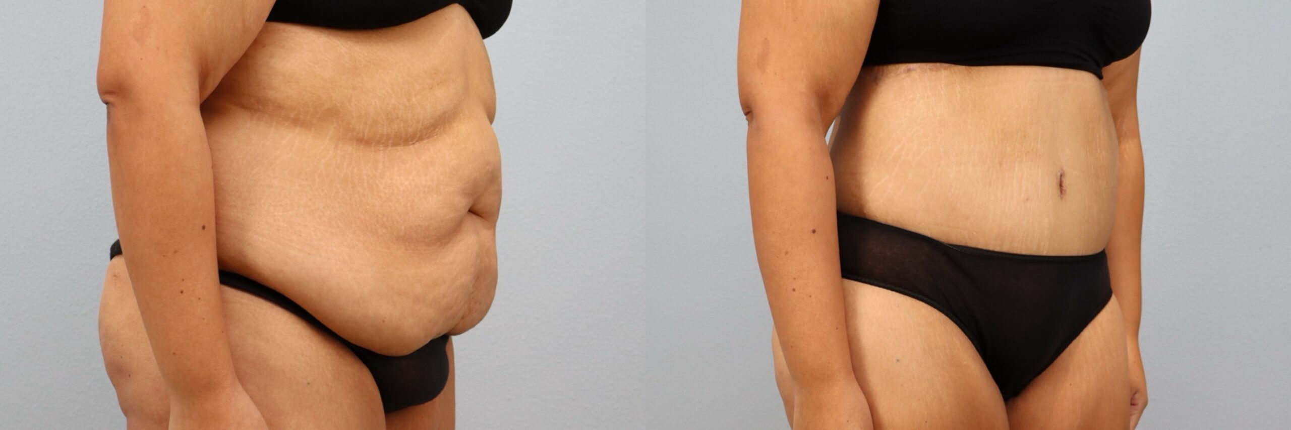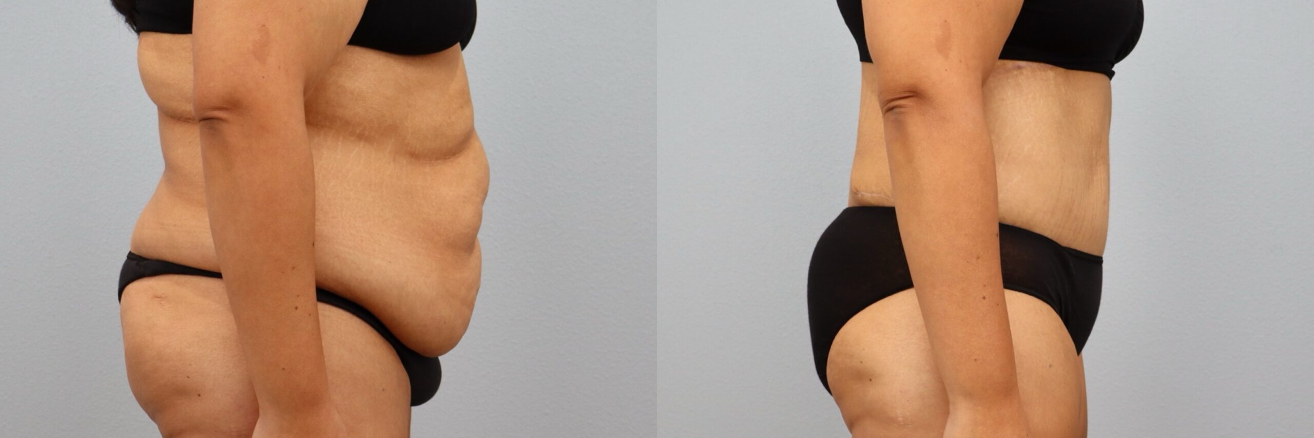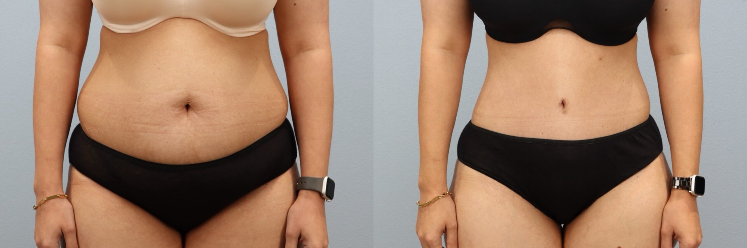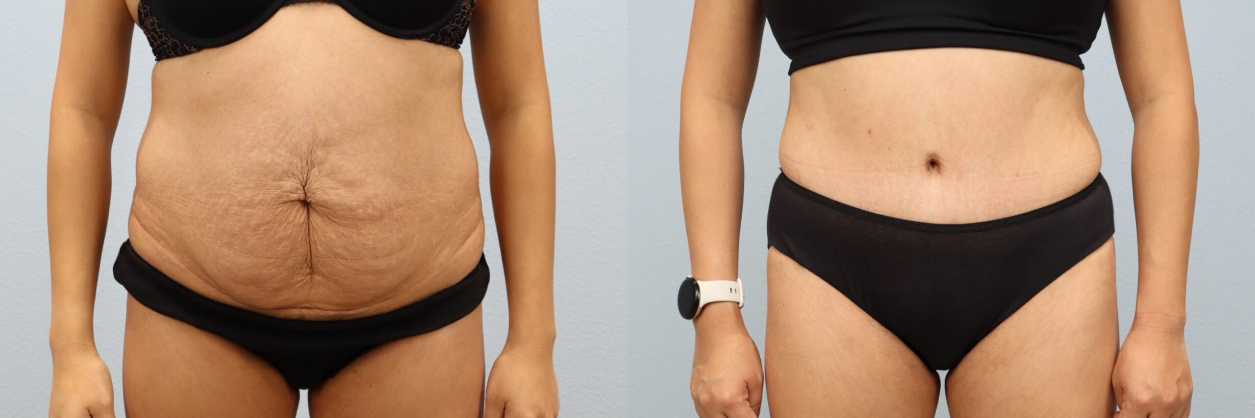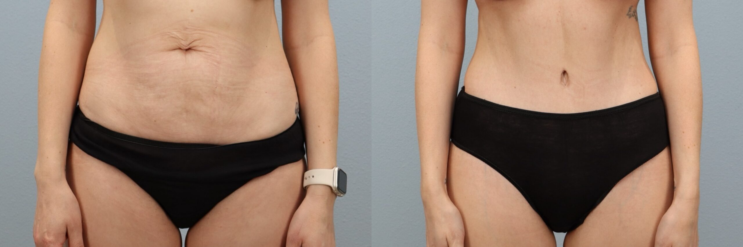 This 30-year-old female patient is shown 6 months after her tummy tuck with liposuction to the flanks performed by board-certified plastic surgeon Dr. Neaman. This combination procedure tightened the abdominal wall and removed excess skin while refining the waistline through targeted liposuction. Her before and after results show a smoother, flatter abdomen with improved contour and enhanced core definition, creating a more balanced and natural silhouette.