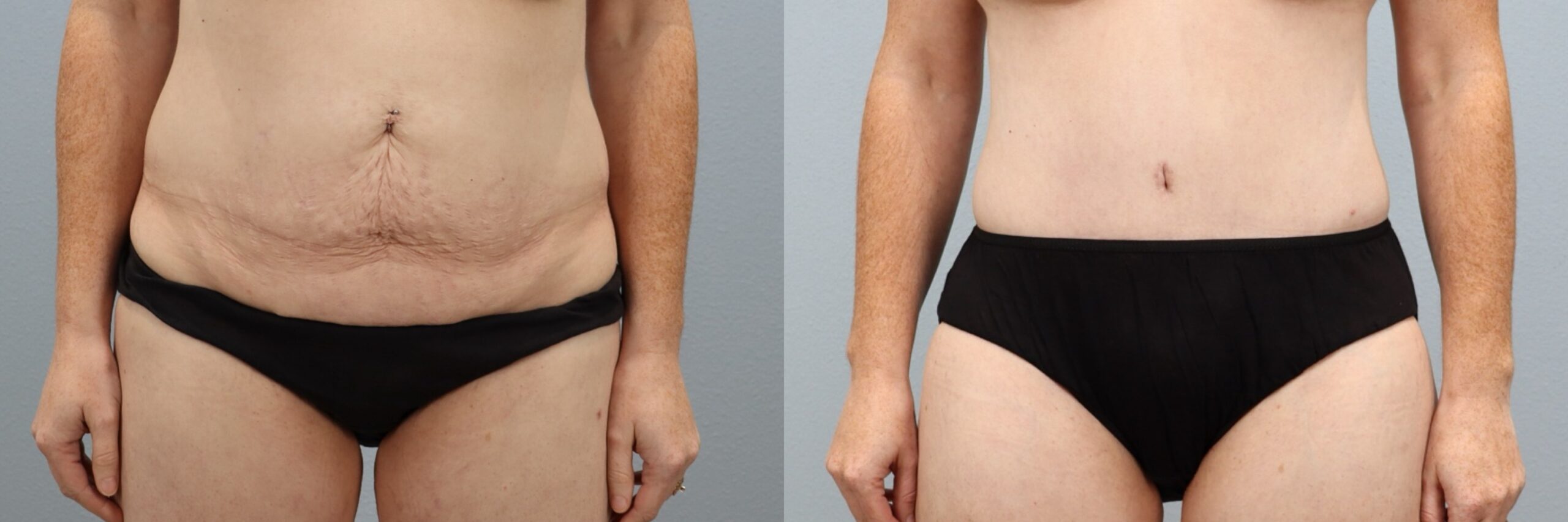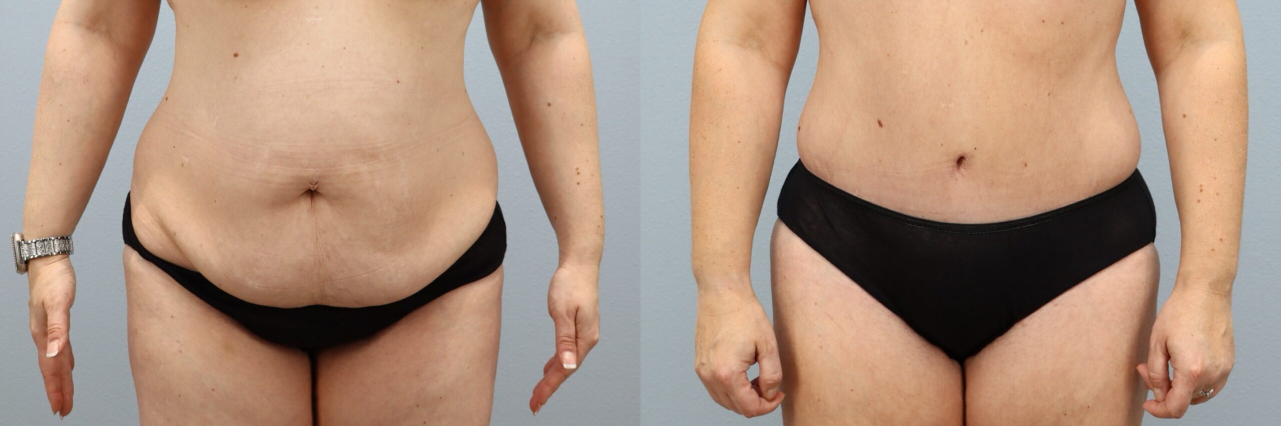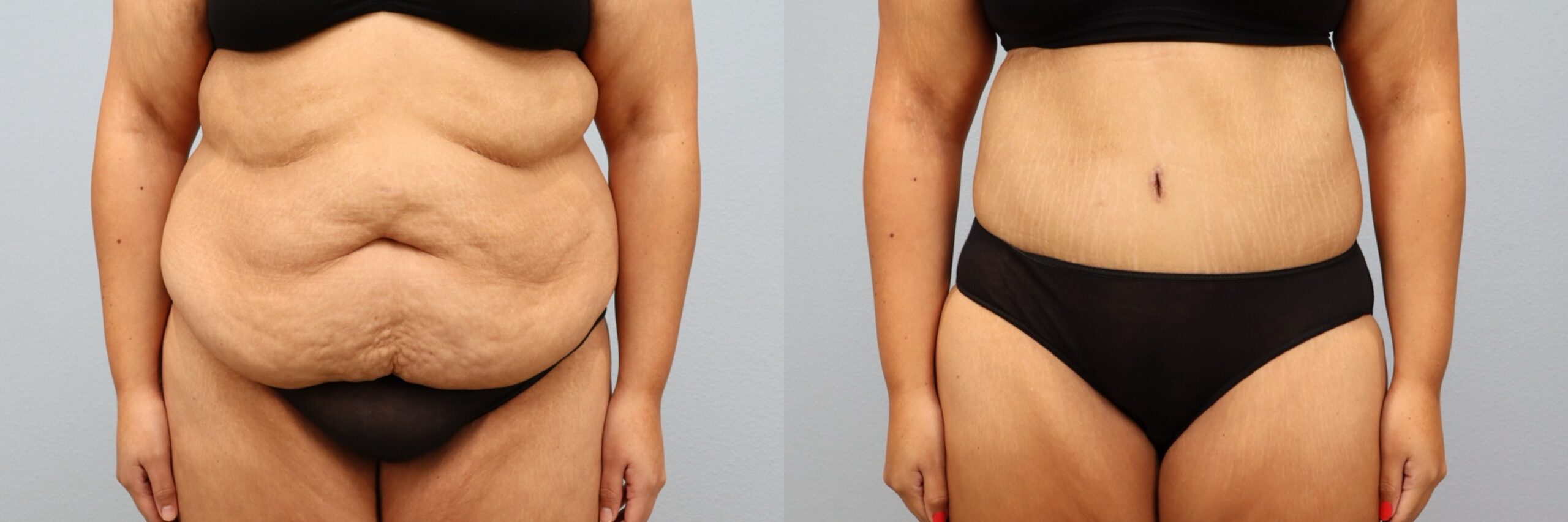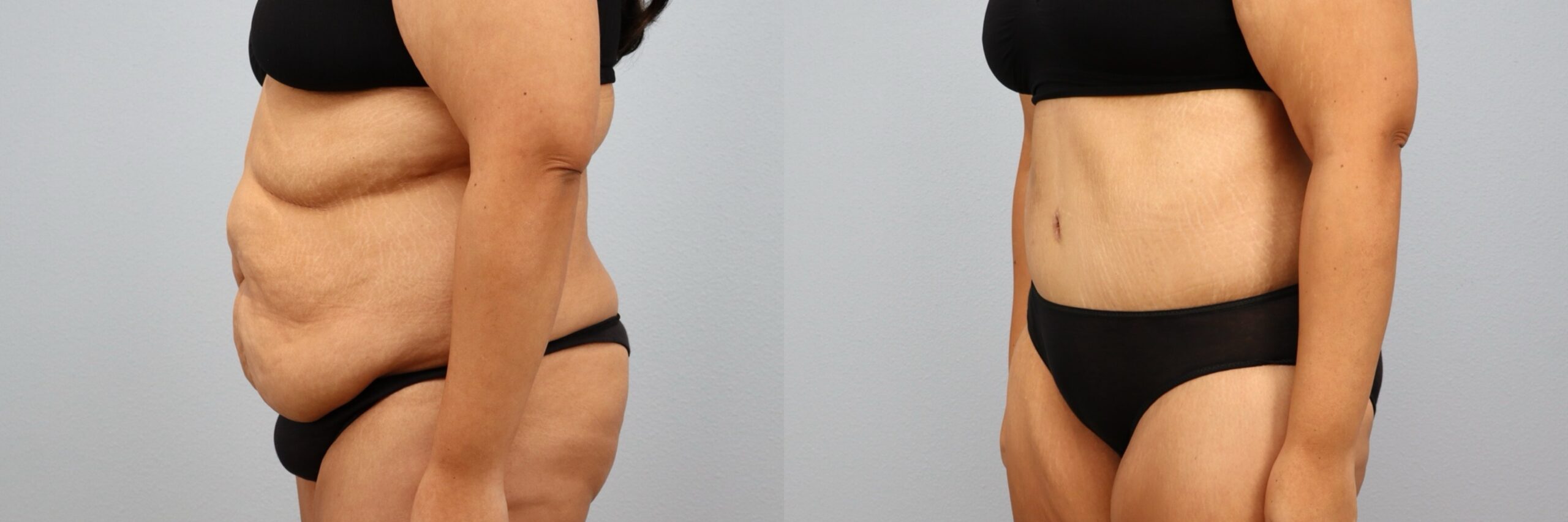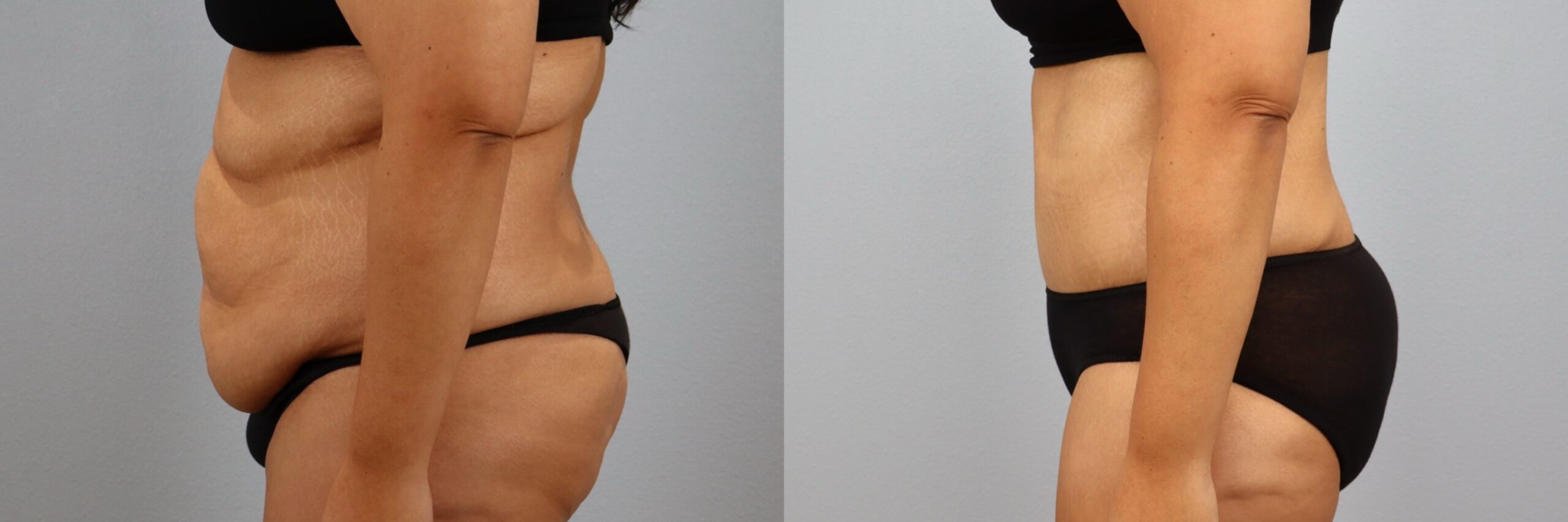 This 30-year-old female patient is shown 6 months after her tummy tuck with liposuction to the flanks performed by board-certified plastic surgeon Dr. Neaman. This combination procedure tightened the abdominal wall and removed excess skin while refining the waistline through targeted liposuction. Her before and after results show a smoother, flatter abdomen with improved contour and enhanced core definition, creating a more balanced and natural silhouette.