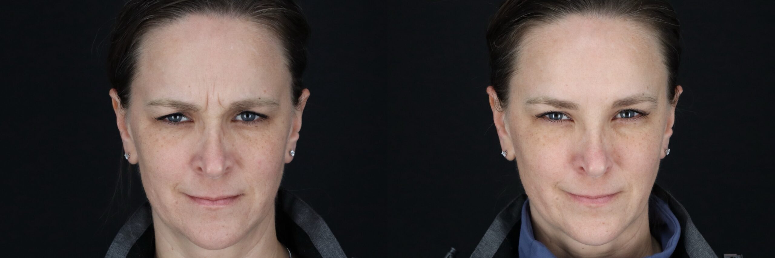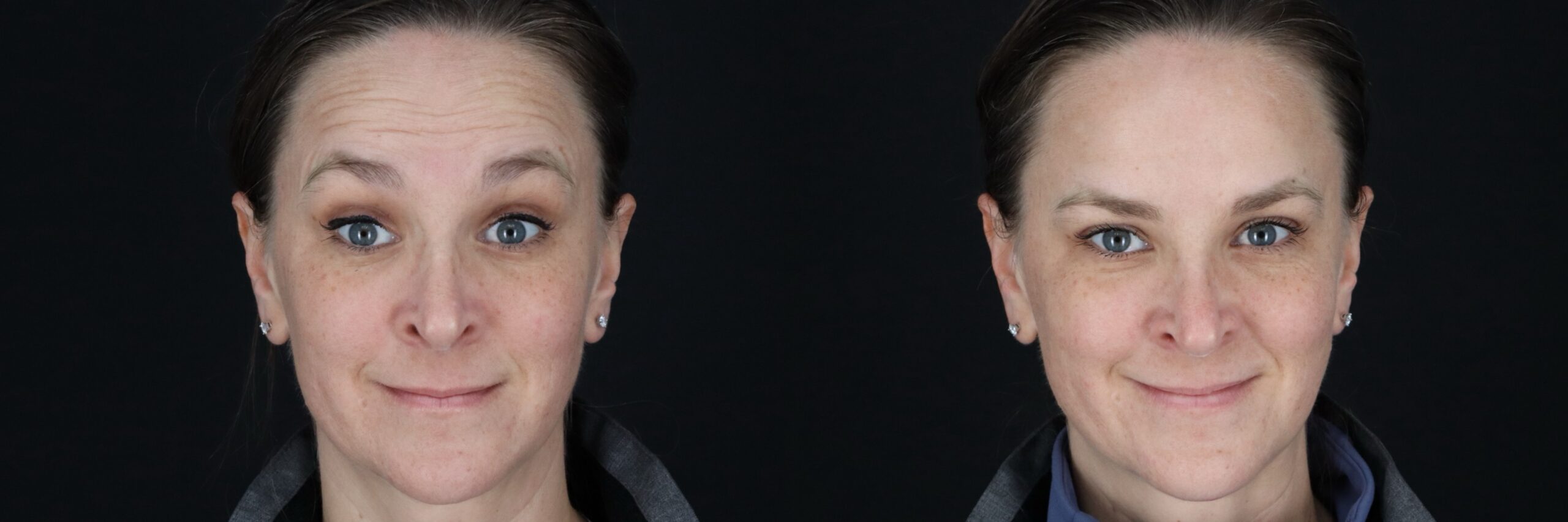 This patient received upper and lower face Botox to address expression lines and improve overall facial balance. At two weeks post-treatment, the results show a smoother, more refreshed appearance with softened lines across the forehead, around the eyes, and through the lower face. Targeted treatment helps relax areas of tension while preserving natural movement and expression.