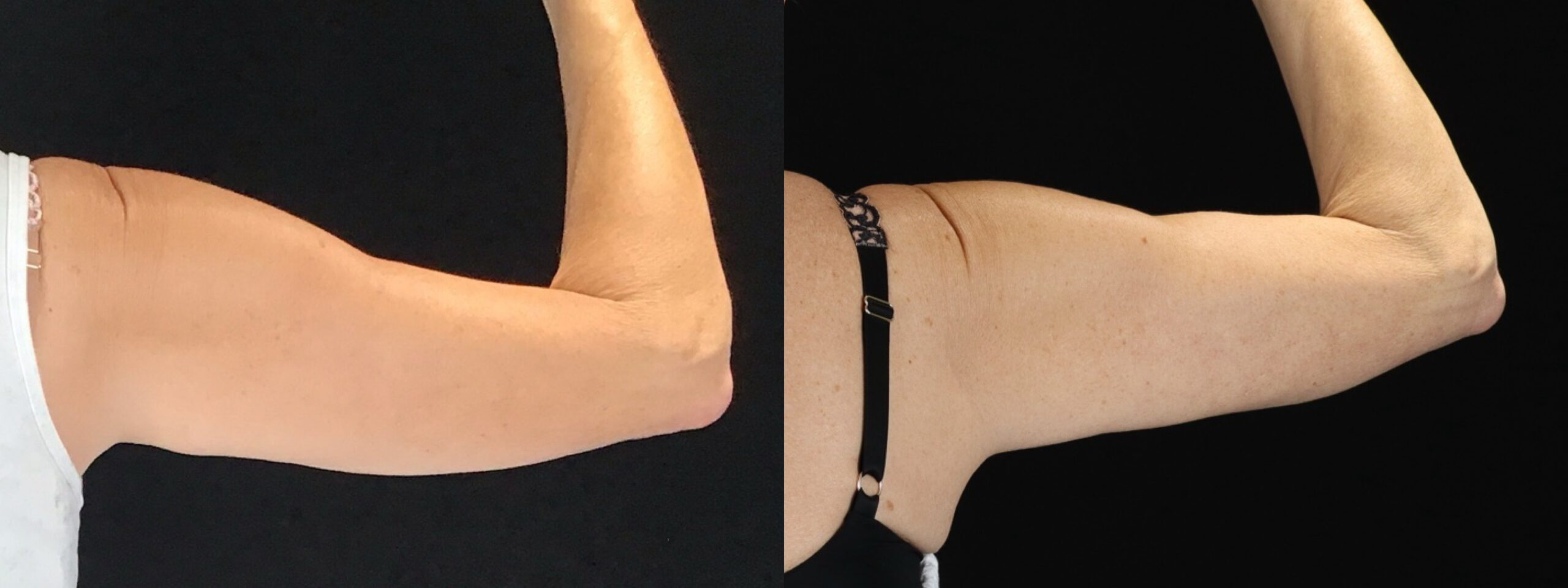 After 3 months and a full series of Emsculpt treatments to the arms (6 sessions completed), this patient shows a visibly more toned, sculpted upper arm contour. Emsculpt uses targeted muscle stimulation to strengthen and define the underlying muscles, helping improve firmness in an area where many patients worry about looking soft or less defined. The before-and-after photos reflect a natural-looking refinement, with a smoother, more athletic shape that still feels like her body, just enhanced. Results like these are ideal for patients looking for non-surgical support in improving arm tone and overall upper body confidence.