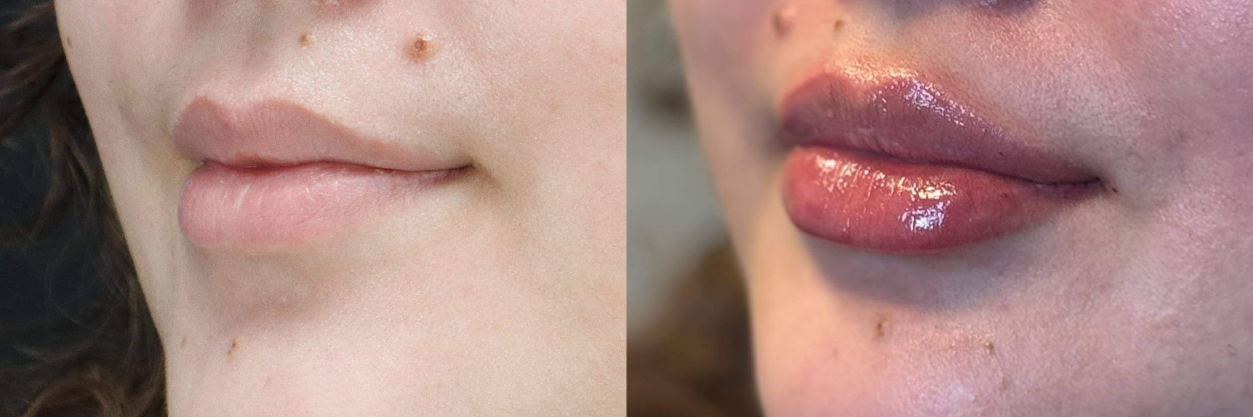 This patient received lip filler to enhance lip volume, shape, and symmetry. At four weeks post-treatment, the results have fully settled, revealing smooth, well-defined lips with a naturally fuller appearance. The enhancement blends seamlessly with the patient’s features, maintaining balance and proportion while avoiding an overfilled look. This treatment is ideal for patients seeking subtle yet noticeable lip rejuvenation with long-lasting, natural-looking results.