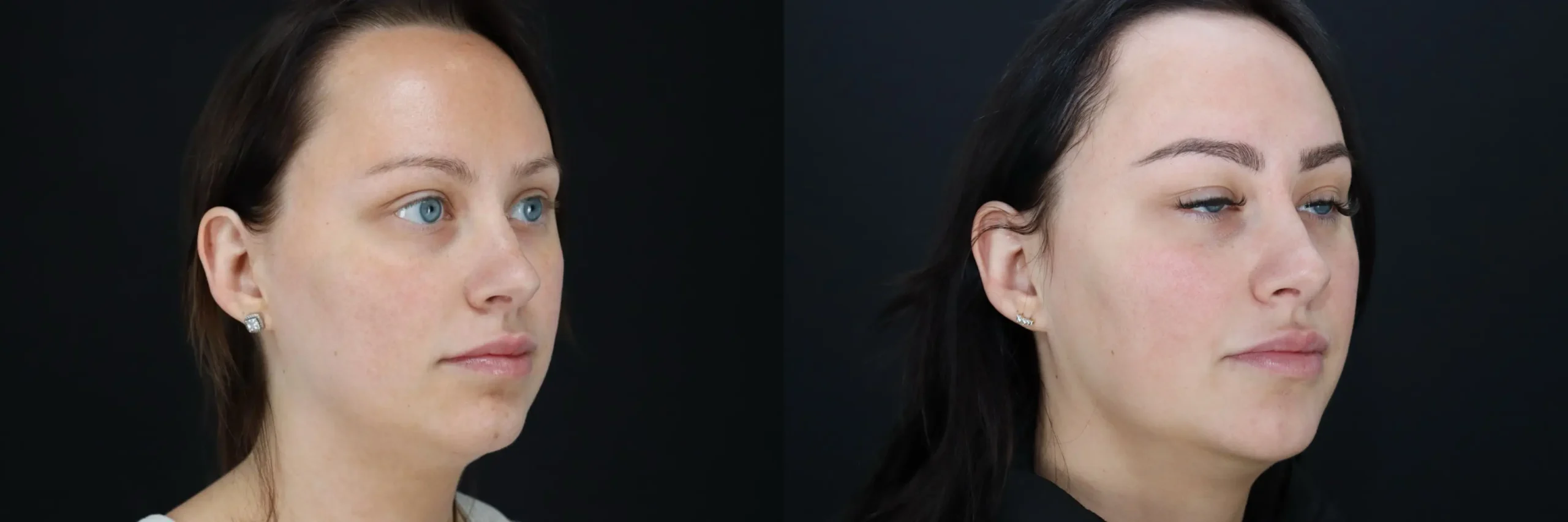 This patient received full face Sculptra to enhance collagen production and restore soft, natural volume, combined with a series of three PRF EZ Gel treatments placed under the eyes, in the lateral cheeks, and around the marionette area. These treatments worked together to improve overall skin texture, tone, and elasticity while addressing volume loss and discoloration beneath the eyes. At 18 months post-treatment, her skin appears smoother, firmer, and more radiant with a naturally refreshed look. The combination of collagen stimulation and regenerative PRF therapy created balanced, long-lasting rejuvenation that enhances her features while maintaining a soft, authentic result.
