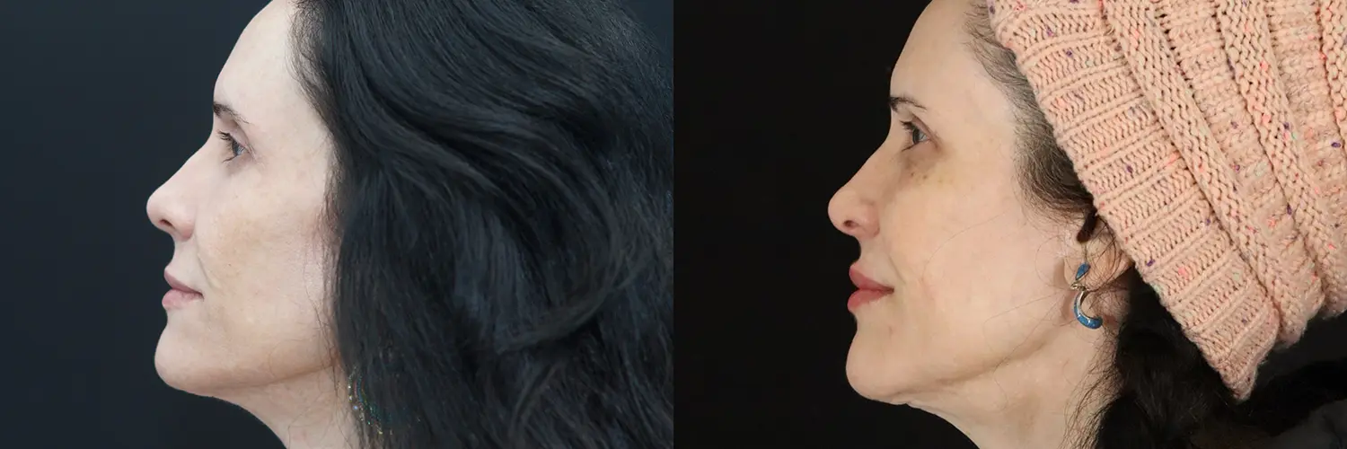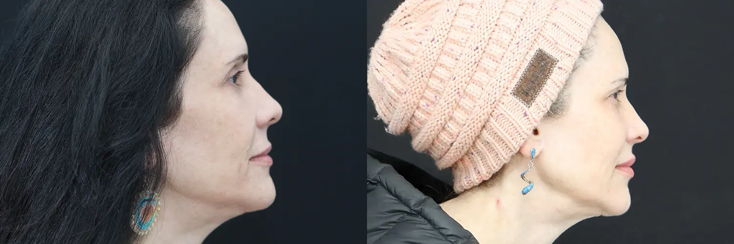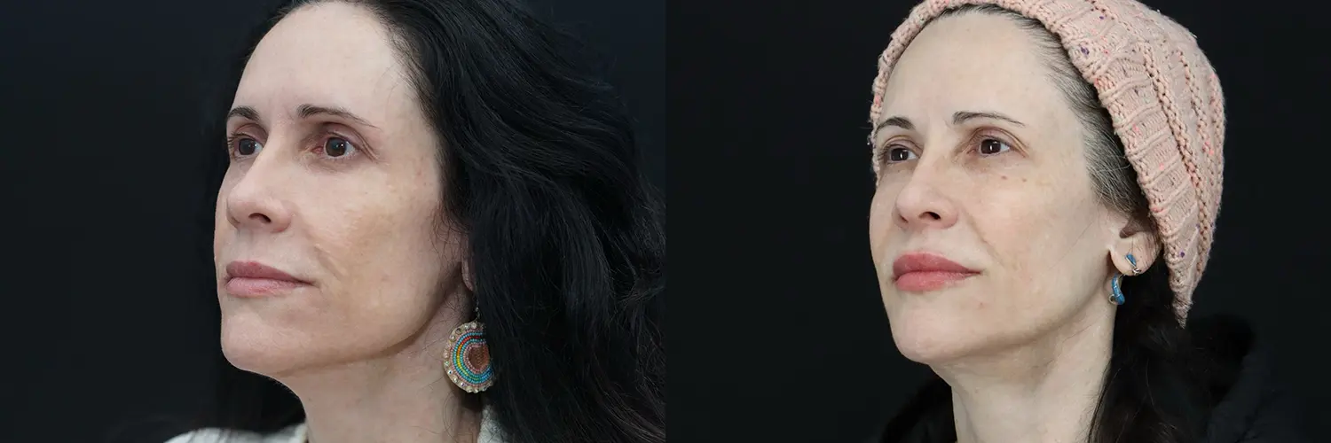 This patient received full face Sculptra to enhance overall facial structure and stimulate natural collagen production. At 28 months post-treatment, her results remain soft and balanced, with subtle lift and improved contour through the cheeks, temples, and jawline. The skin appears smooth, firm, and radiant, reflecting long-lasting collagen support. This gradual rejuvenation created a refreshed, natural appearance that continues to age beautifully over time without looking overfilled.
